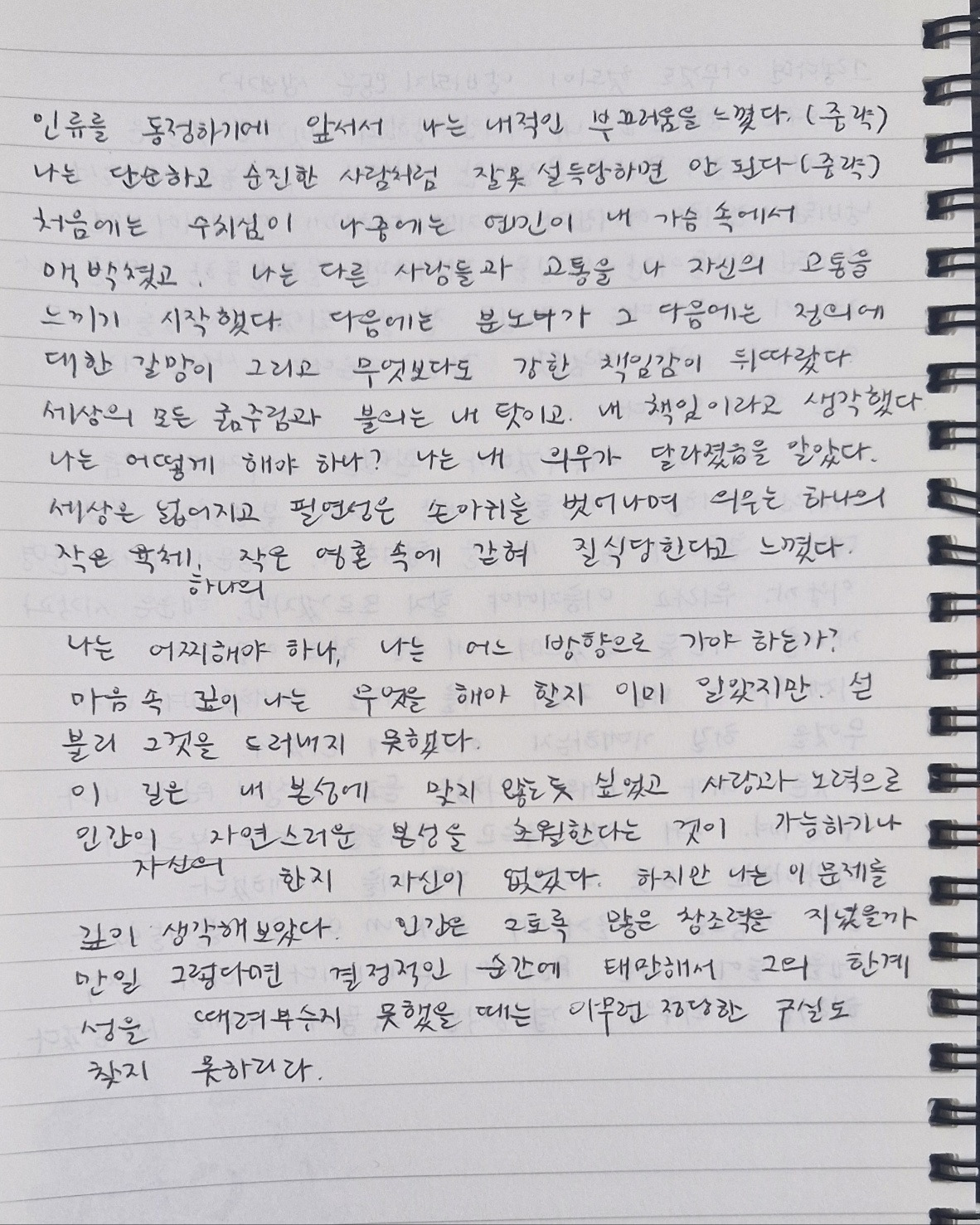 인류를 동정하기에 앞서서 나는 내적인 부끄러움을 느꼈다. (중략)