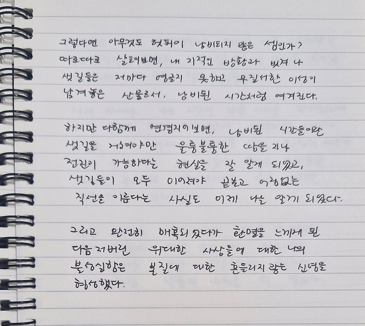 따로따로 살펴보면, 내 지적인 방황과 빗겨 나 샛길들은 저마다 영글지 못하고 무질서한 이성이 남겨놓은 산물로서, 낭비된 시간처럼 여겨진다.
