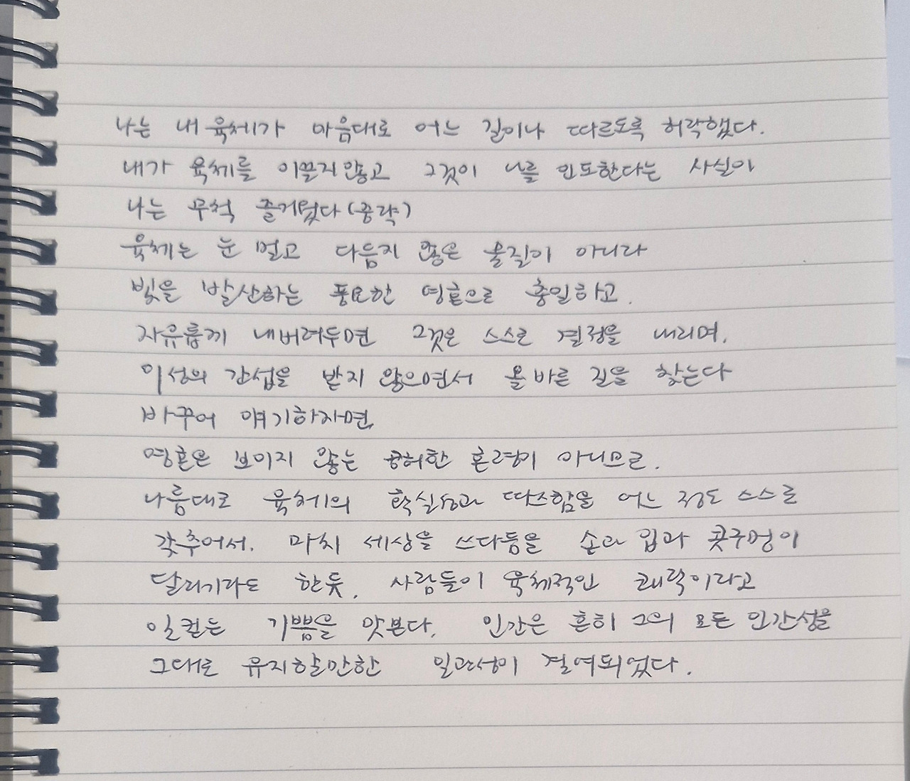 내가 육체를 이끌지 않고 그것이 나를 인도한다는 사실이 나는 무척 즐거웠다.(중략)