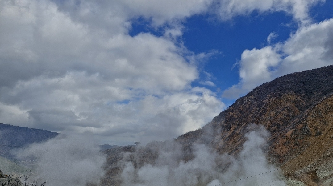 유황이 피어오르는 언덕을 바라보았다