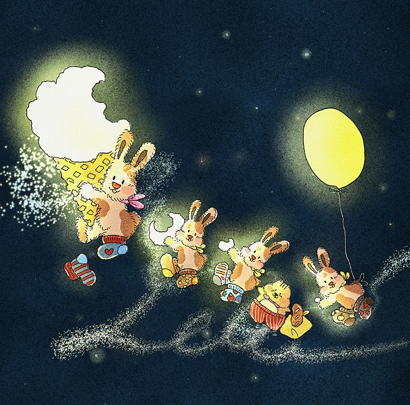 보름달로 만든 두둥실 보름달 아이스크림을 먹고 떠오르는 달 토끼들이 있다. 신나는 꿈나라 여행을 떠난다.