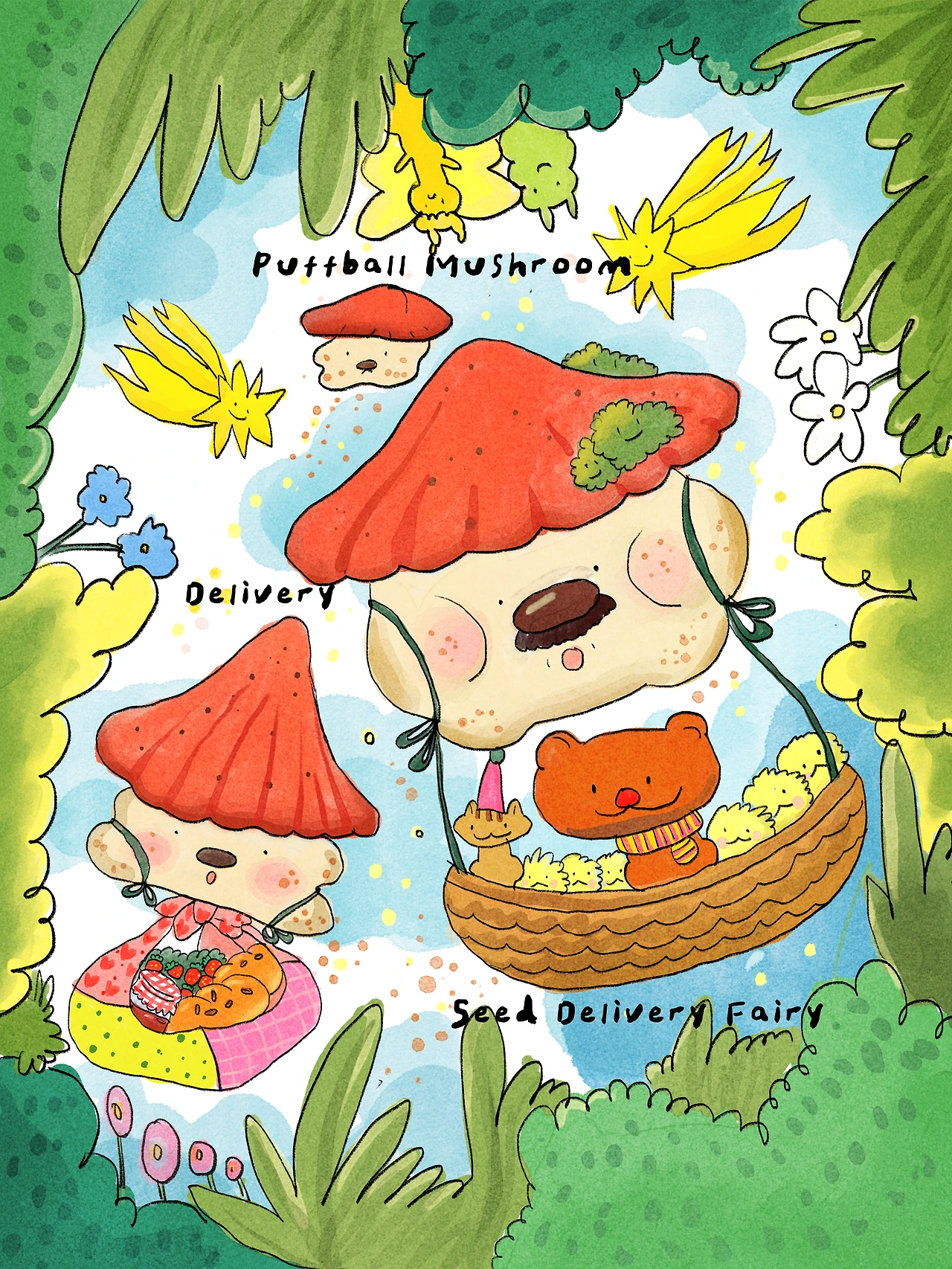 부푸는 버섯은 모두 자라면 부풀어 올라 새로운 곳으로 씨앗을 퍼뜨리러 떠납니다.