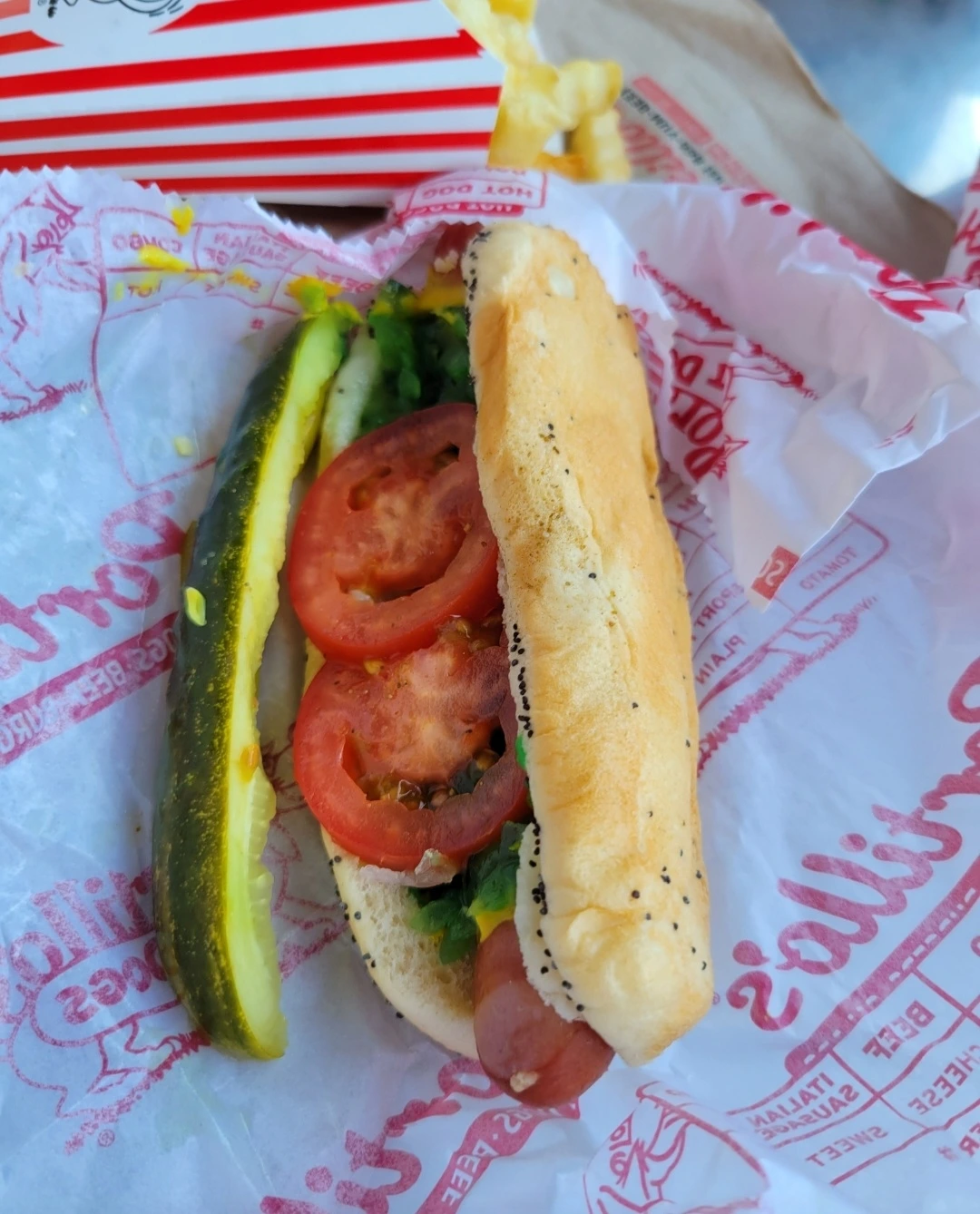 시카고에서 뭘 먹을까? 생각하면 떠올리는 음식이 있다. 바로 딥디쉬 (deep dish) 시카고 피자이다. 하지만 나는 시카고 하면 핫도그가 떠오른다. 핫도그 하면 우리나라 사람들은 대개 기다란 막대기에 꽂힌 명랑핫도그를 생각한다. 미국에선 콘독(corn dog)이라고 부른다. 미국에서 핫도그라고 하면 기다란 빵 가운데를 갈라 소시지를 껴넣고 케첩과 머스터드를 뿌린 걸 말한다.