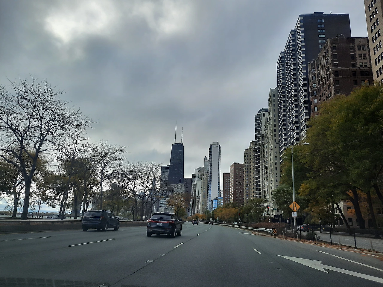 존행콕 건물을 필두로 나타나는 시카고의 초입. 시카고에 왔다는 걸 매번 실감하는 순간이었다. 이도시에 살고 있음에 감사함도 느끼고 해외생활의 묘미를 제대로 느낄 수 있었다. 시카고 대화재로 도시의 많은 부분이 소멸되고 다시 계획적으로 지어진 만큼 도시의 경관이 정말 보기 좋게 지어졌다.