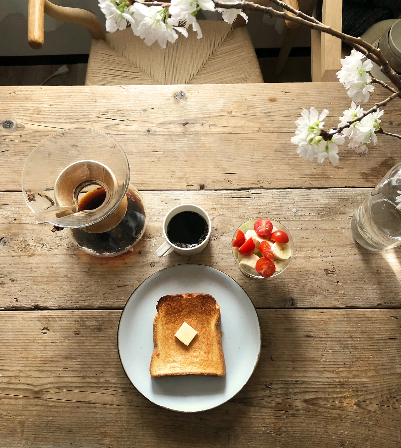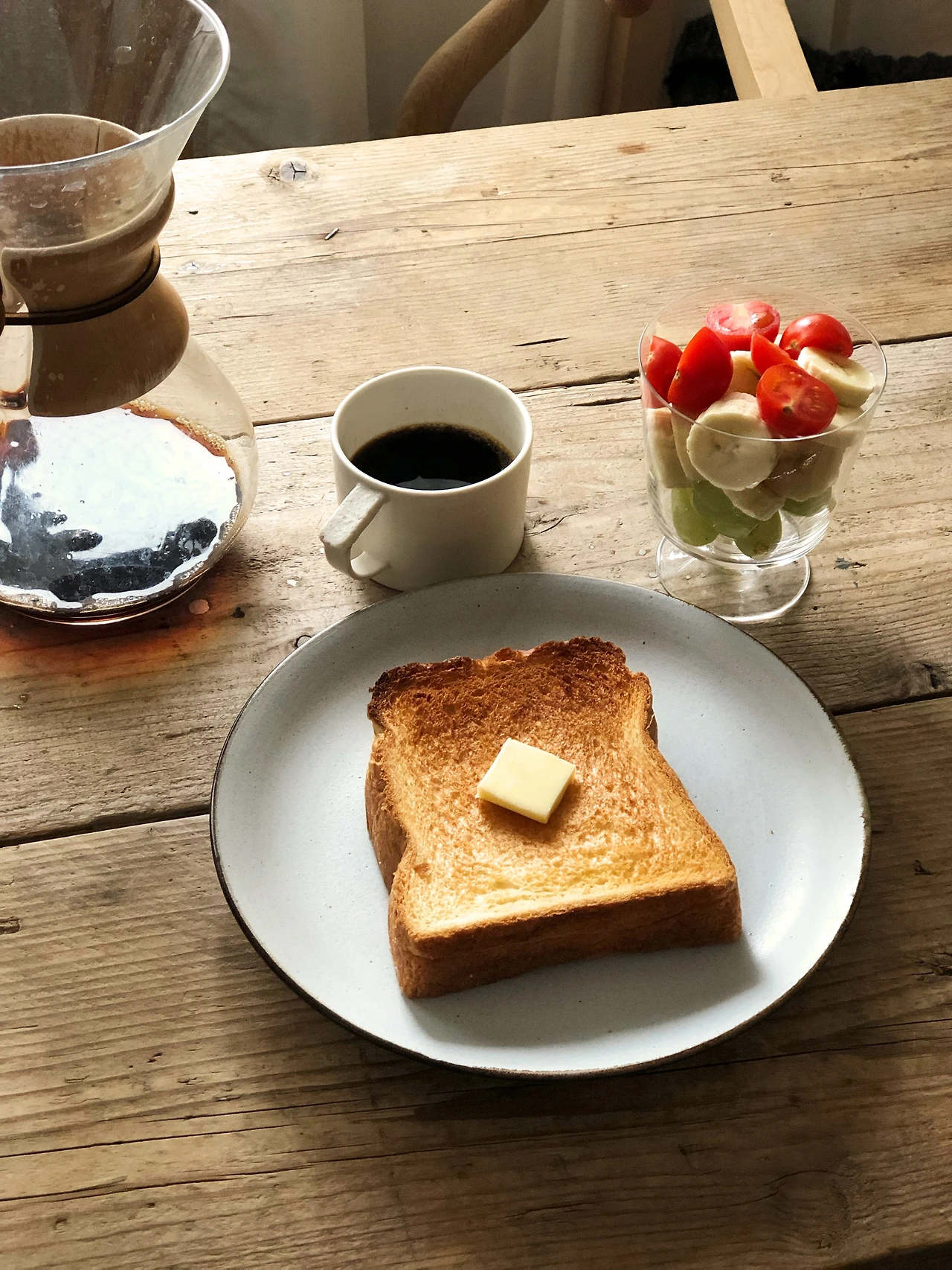 버터 토스트는 balmuda토스트기 식빵을 굽고 심플하게 버터를 올린다.