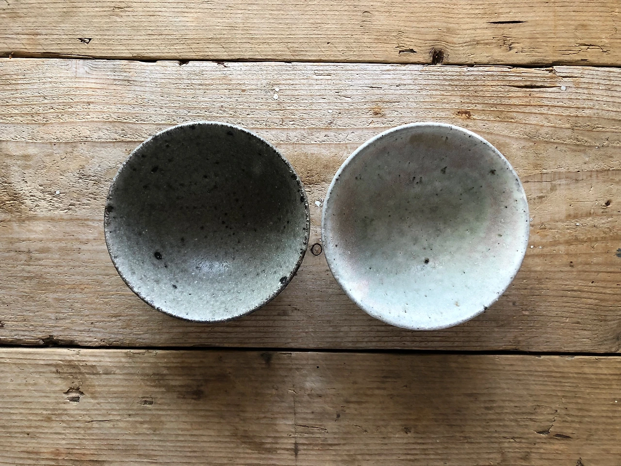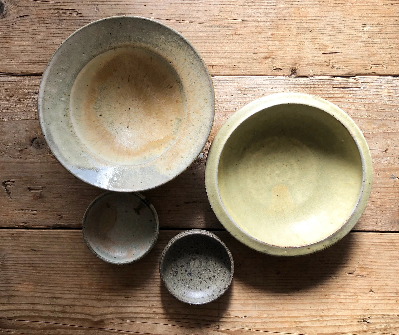 연둣빛 접시와 노란빛 접시 둘 다 같은 유약을 바른 작품인데도 굽는 방식과 시간에 따라 이렇게 다른 느낌이..