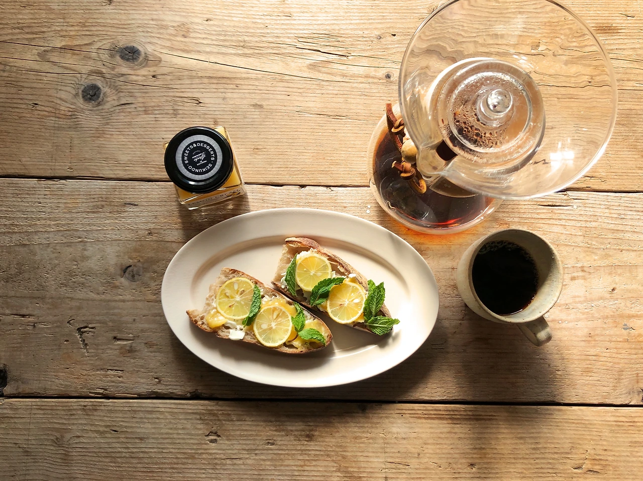 마지막으로 슬라이스 한 유기농 레몬과 민트 잎을 올리면 플레이팅 완성