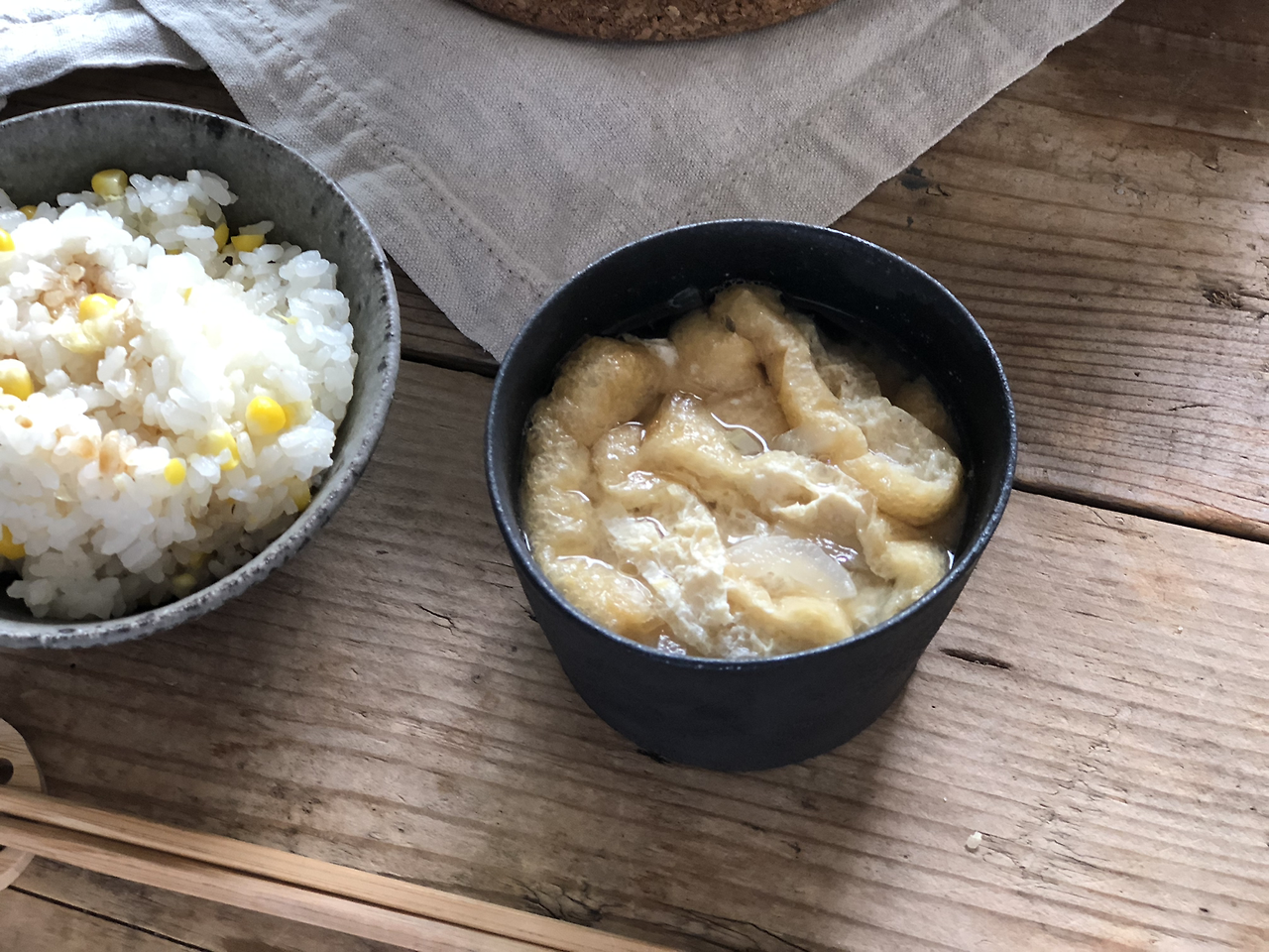 양파, 감자, 튀긴 유부만을 넣어서 만든 미소 된장국.