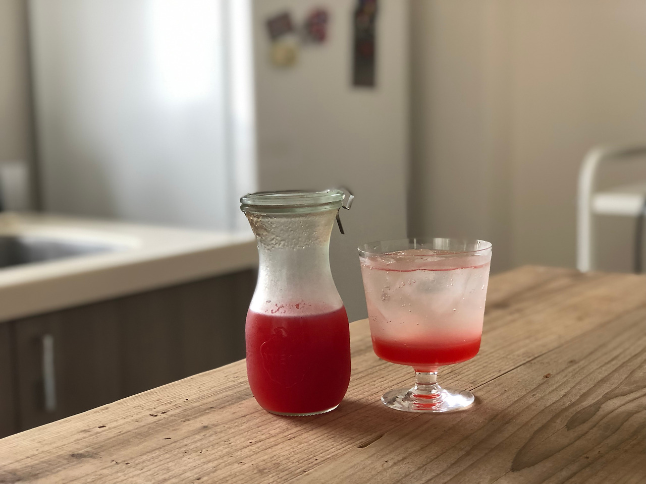 홈메이드 자두 시럽인데 빙수 위에 시럽으로 뿌려먹거나 탄산수에 넣어서 주스로 마시기도 한다.