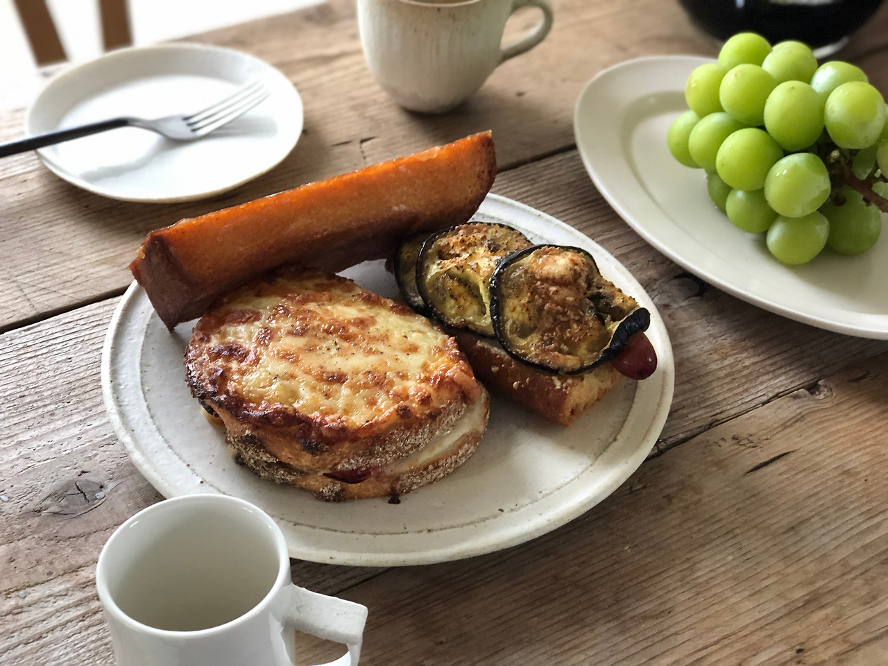 아침용으로 사 온 빵은 크로크 무슈, 소시지 가지 빵 , 슈가 토스트.