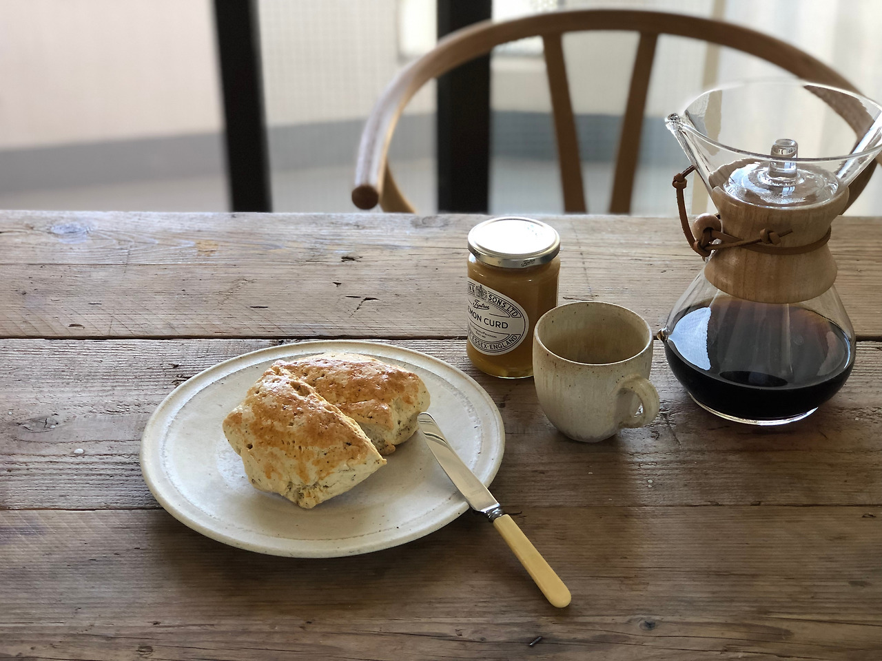 얼그레이 스콘은 영국사는 친구에게서 받은 레몬 커스터드 잼을 발라서 먹었다.