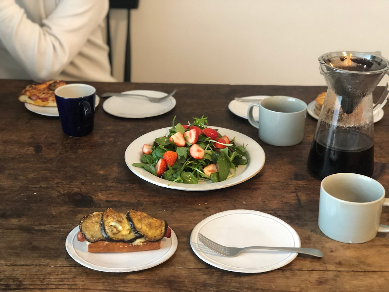 어제 첫 모임은 언니네 집에서 하게 되었는데 언니가 살고 있는 도쿄 세타가야쿠의 정말 유명한 빵집에서 빵을 사고 집에 와서 같이 샐러드를 만들고 커피를 내리며 소박하지만 여유로운 아침 식사를 하게 되었다.