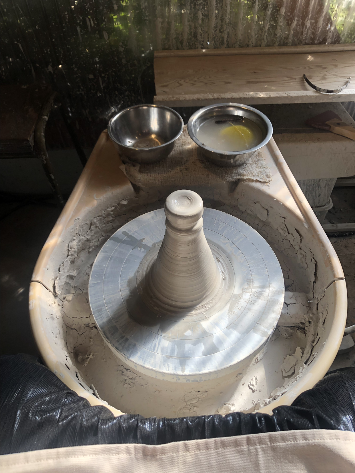 오늘은 체험수업이기도 하고 선생님께서 도와주셔서 바로 물레 돌리기 작업에 들어갈 수 있었다.