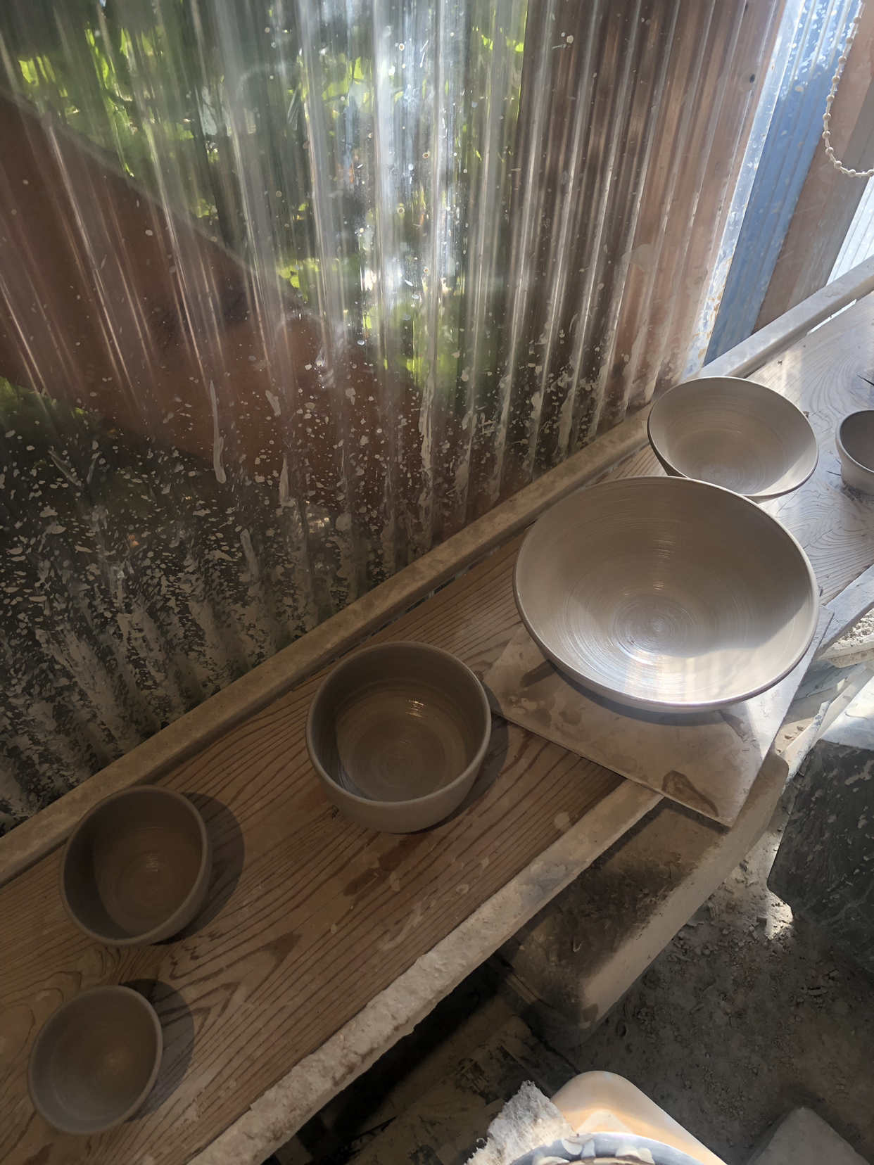 목표는 돈부리나 우동을 넣을 수 있는 그릇이었는데 가마에 구워지면 사이즈가 10% 작아지는 점을 감안하면 샐러드용 접시가 될 듯하다