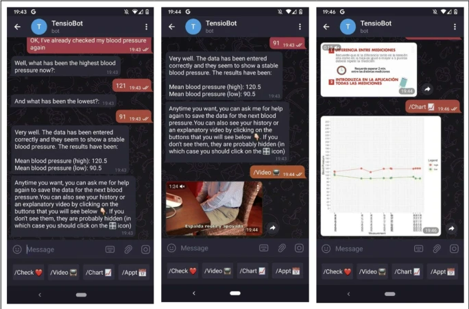 본 연구 결과에 의하면, 고혈압 환자의 혈압을 체크하기 위한 챗봇에 대해 환자는 쉽고 유용하다고 응답했으며, 환자는 측정 절차에 대한 지식을 향상하는데 도움을 받았습니다. 다음으로 가정에서 얻은 혈압 값(HBPM)과 홀터 장치(ABPM)에서 얻은 값 사이에는 집단 간 차이가 없었습니다. 연구진은 이러한 결과는 챗봇 사용자가 종이를 사용한 사용자만큼 혈압을 잘 측정한다고 해석했습니다. 다만 챗봇이 치료 순응도를 향상한다는 초기 가설에 대해서는 두 집단 간 차이가 없다고 나타났습니다.