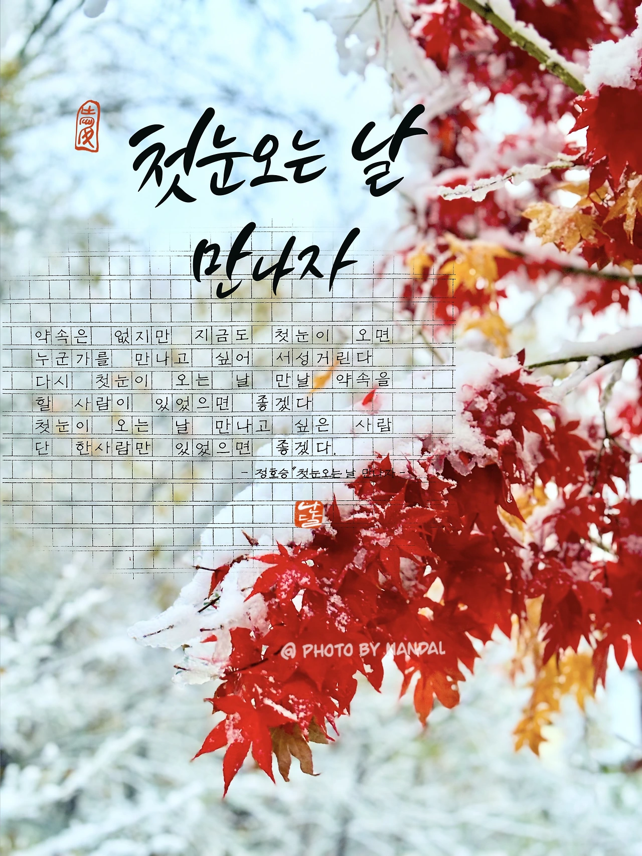 어느 시인의 글 "첫눈 오는 날 만나자" 일 부분을 적으며 집에 갈 걱정을 한다.