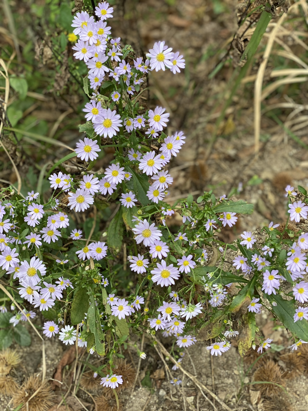 시루- 백운 능선구간에는 억새도 없는 억새밭 표지판이 실망을 주는가 하면, 가을꽃의 대표선수 구절초와 흔한 야생화들이 섞여 흔하지 않은 풍경을 연출하고 있었고, 떨어진 밤송이에서 알밤을 까먹으면서 어린 시절을 추억하고 있는 한 등산객도 보인다. 떨어진 밤송이를 보니 작지만 알이 꽉 찬 밤이 앙증맞게 들어차 있다. 감상만 하고 청설모나 멧돼지들에게 양보해야 한다.
