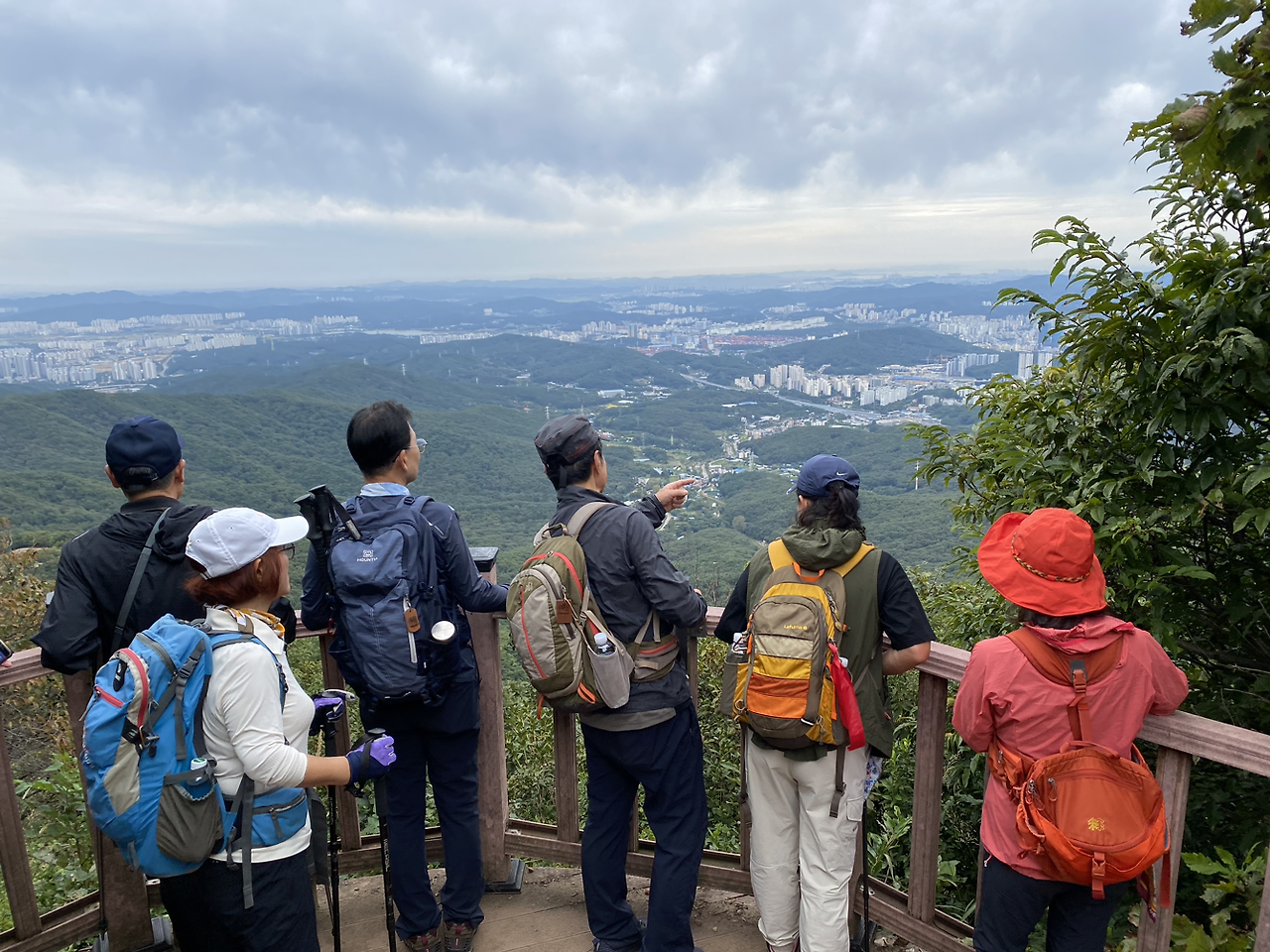 수지성당에서 시루봉까지 가는 이 코스는 초입의 한 두 군데를 제외하고는 경사가 완만하고 시야가 잘 확보되는 탓에 지인들과 대화하면서 걷기 좋은 코스이다. 그래서인지 희미하게 들리는 안주인님들의 수다는 당최 끝이 날 줄 모른다. 이 페이스로 가면 적어도 6시간 이상인데 아랑곳없다.