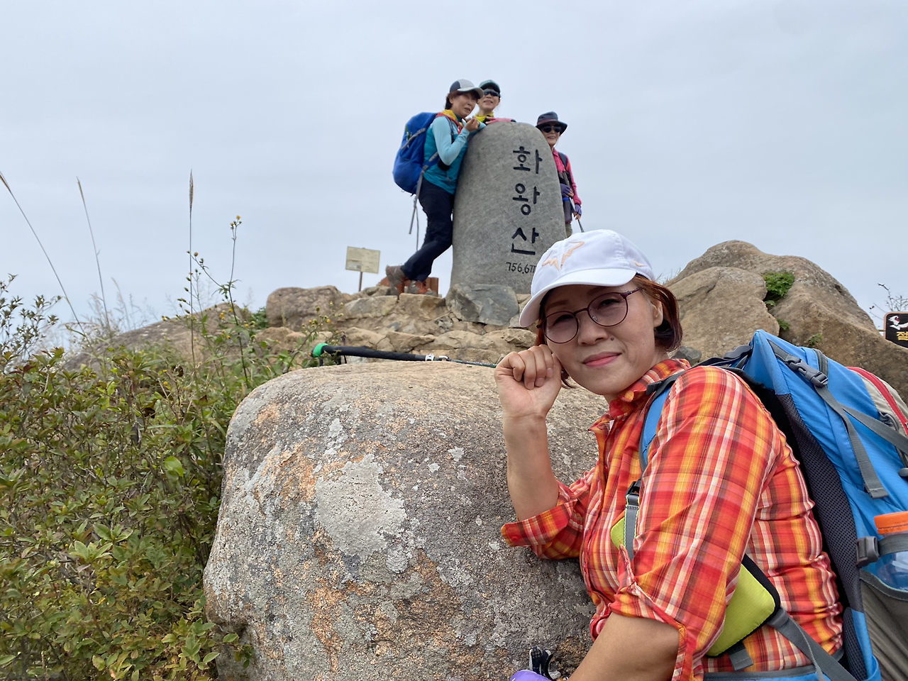 아까 보았던 그 무리의 사람들이 또다시 먼저 자리를 잡고, 창녕시내가 보이는 멋진 조망을 배경 삼아 연신 핸드폰의 셔터를 터치하고 있었다. 포즈가 정말 다양하고 멋지다. 다들 포즈 잡아주는 학원 다니나 보다. 하하