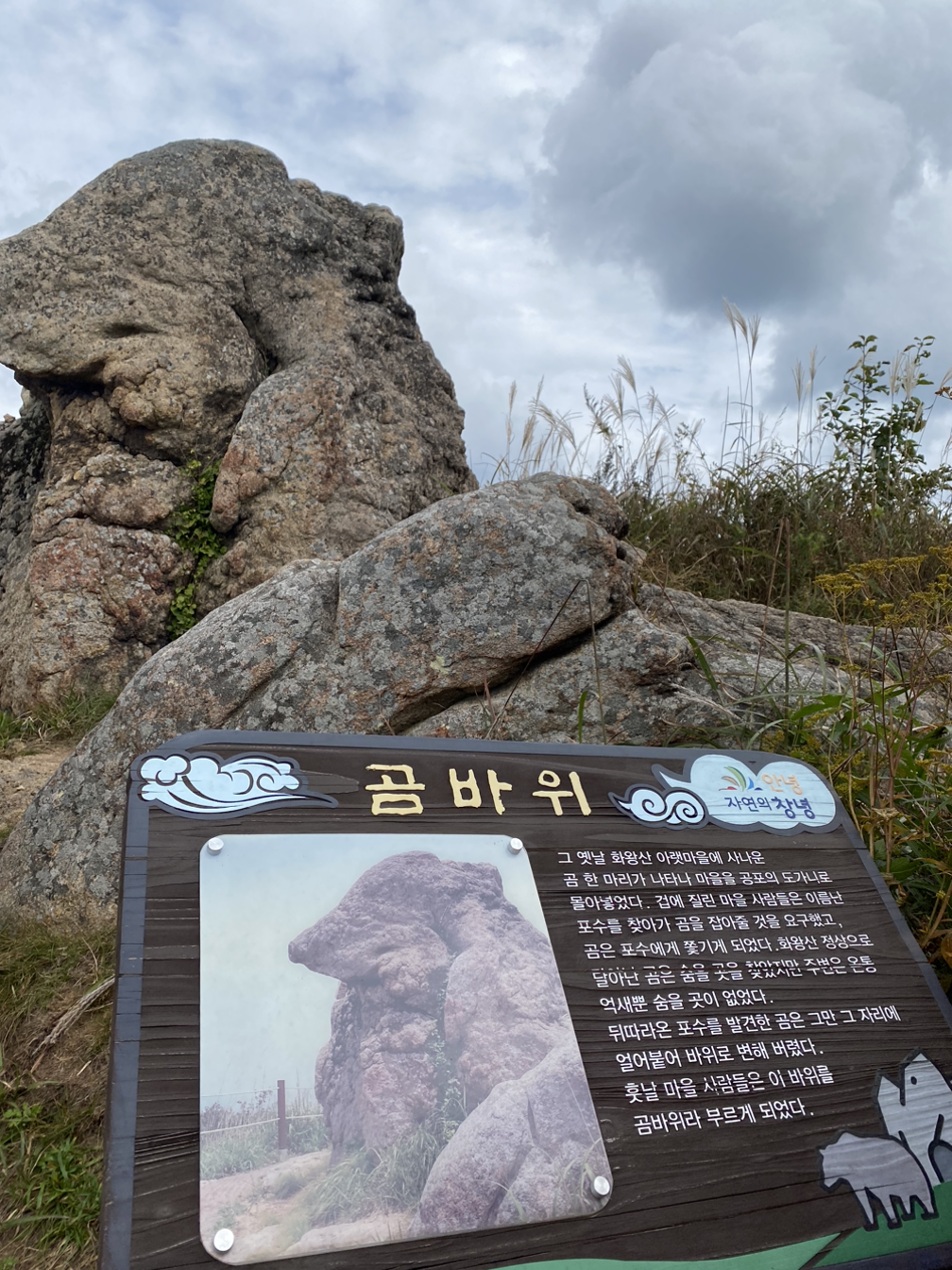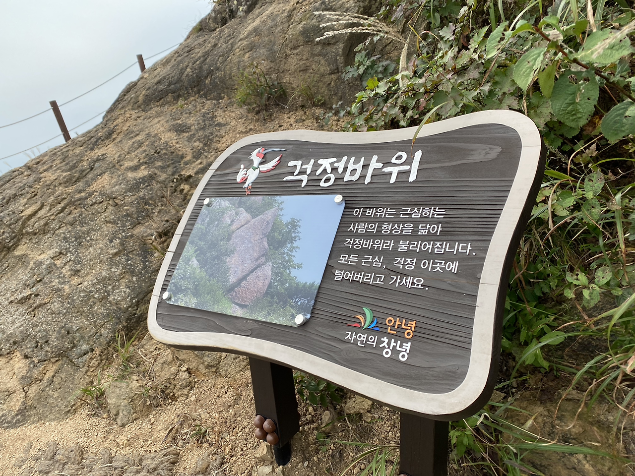 배가 잔뜩 부른 뒤의 정상까지의 발걸음은 숨 더 가쁘고 힘이 더 부친다. 헉헉대며 정상을 향해가는데 근심스러운 사람을 닮았다는 걱정바위가 있다.
