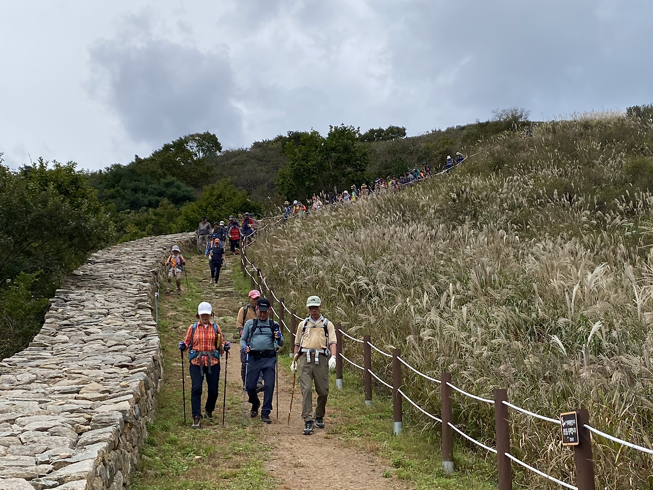 파란 하늘에 은빛으로 춤추는 억새들의 춤사위를 보고 싶어 신청한 산행인데... 오르는 동안 하늘이 맑아지길 기대한다.