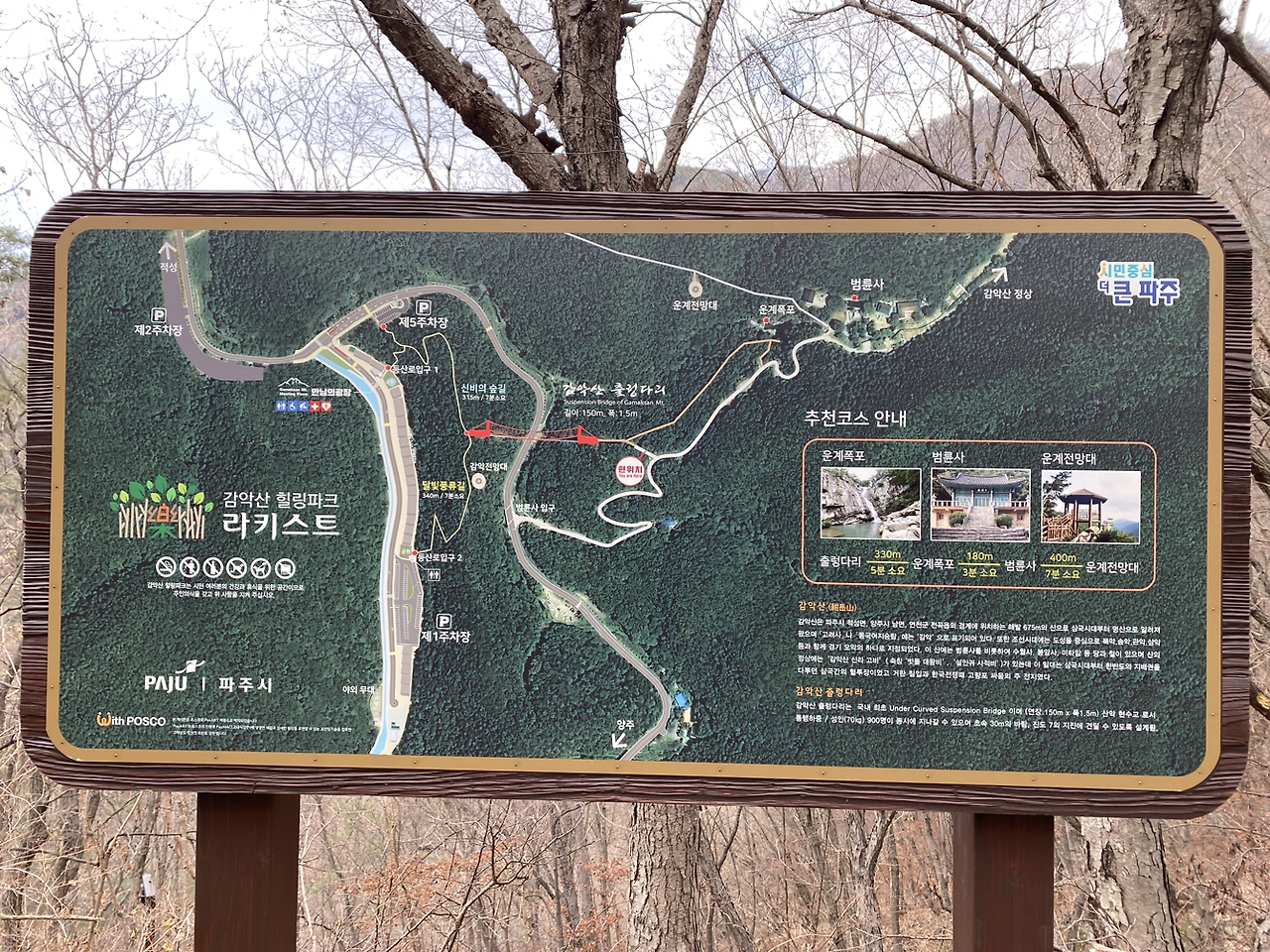 감악산까지는 그리 멀지 않아서 1시간 30분 남짓해서 출렁다리 입구에 도착했다.