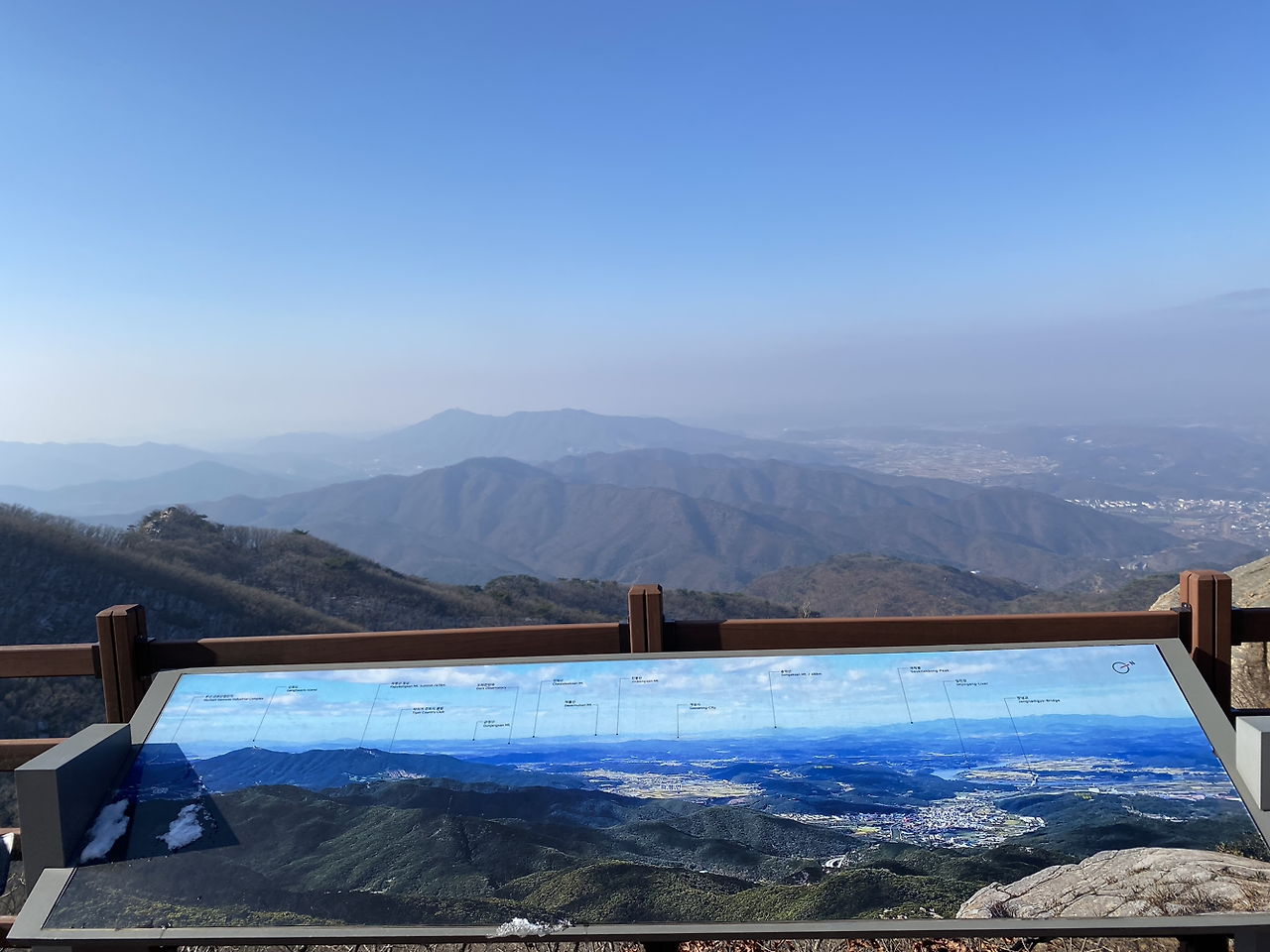벌써 정상이다. 산행시간이 짧아서 인지? 기상관측소 때문인지? 여느 산 정상에서 느끼는 그런 감동이 없다.