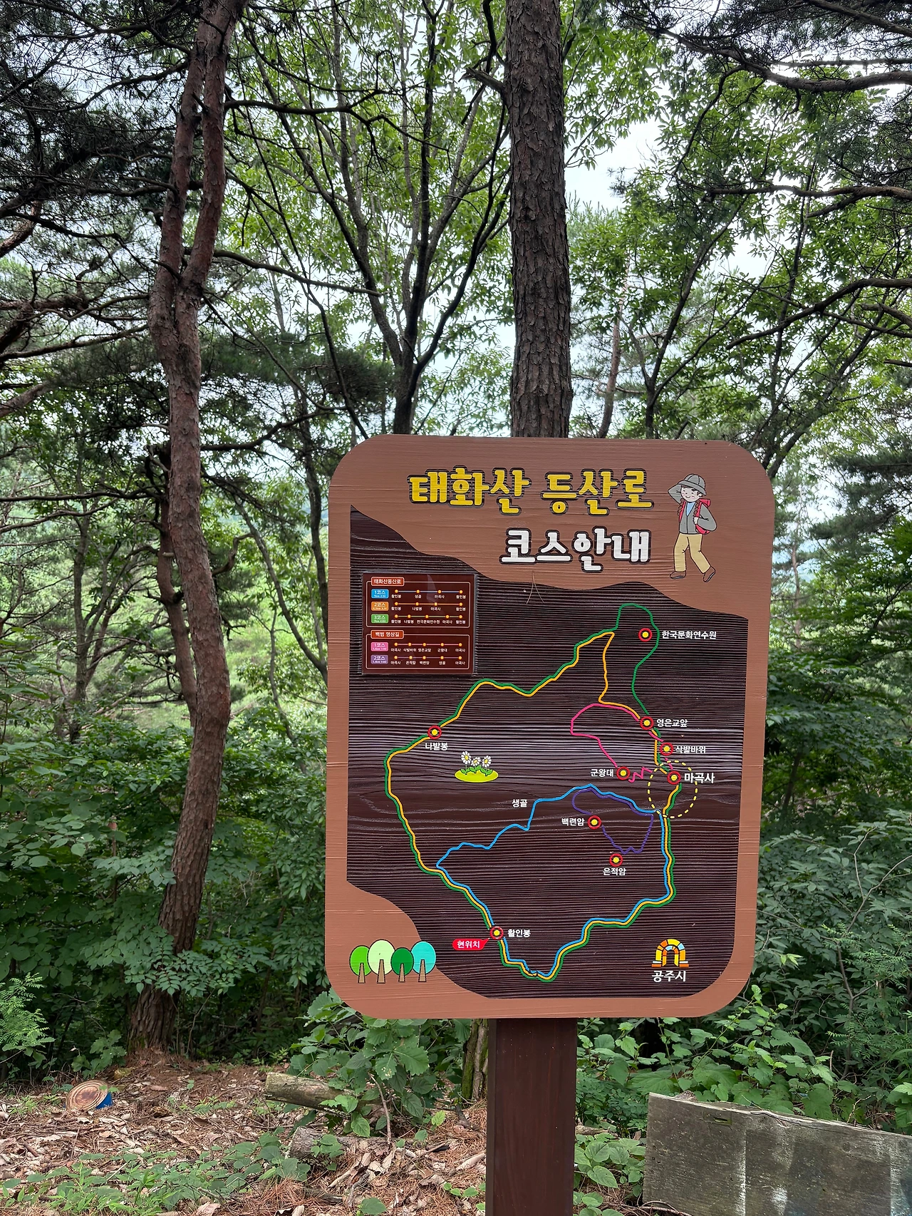 어느 산을 가던 크던 작던 각 산의 특징이 정상석에 잘 나타나있게 마련인데 태화산은 활인봉도 그랬고, 나발봉도 정상석 없이 정자의 한 기둥에 정상이라고 새겨져 있다. 사실 태화산의 정상이 어딘지도 잘 모르겠다.