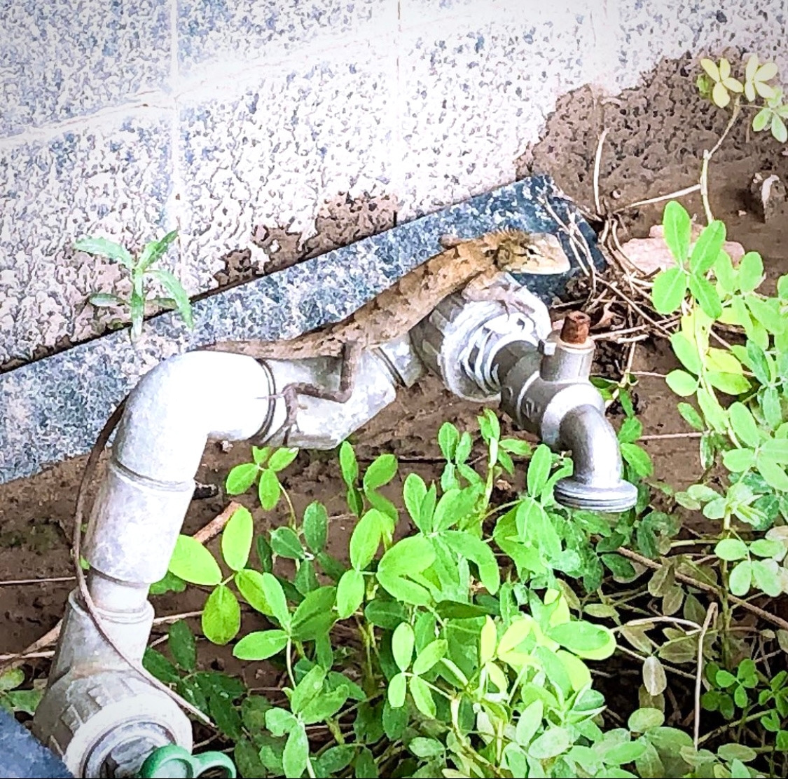 카페 앞 화단에서 이리 꼬리가 긴 도마뱀을 만나긴 처음