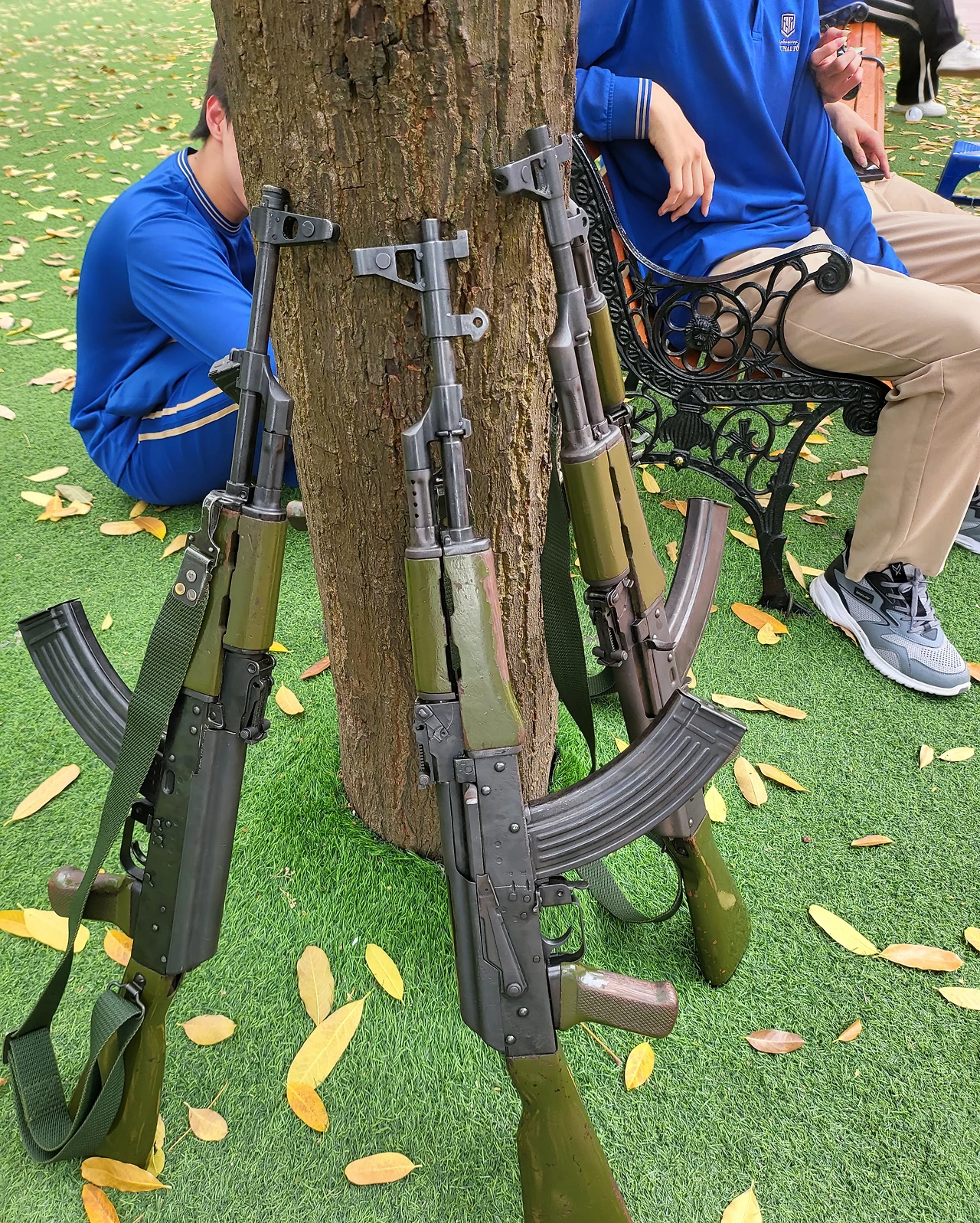 베트남 스러움을 대변하는 딱 그 여성상이 저기에서 총을 들고 수업을 진행하고 있는 장면 자체가 신기하다. 자유 경제체제이기에 평소에는 잘 못 느끼고 살다가도 이럴 때면 한 번씩 ‘아 내가 사회주의 공화국에 살고 있구나 ‘ 체감되곤 한다.