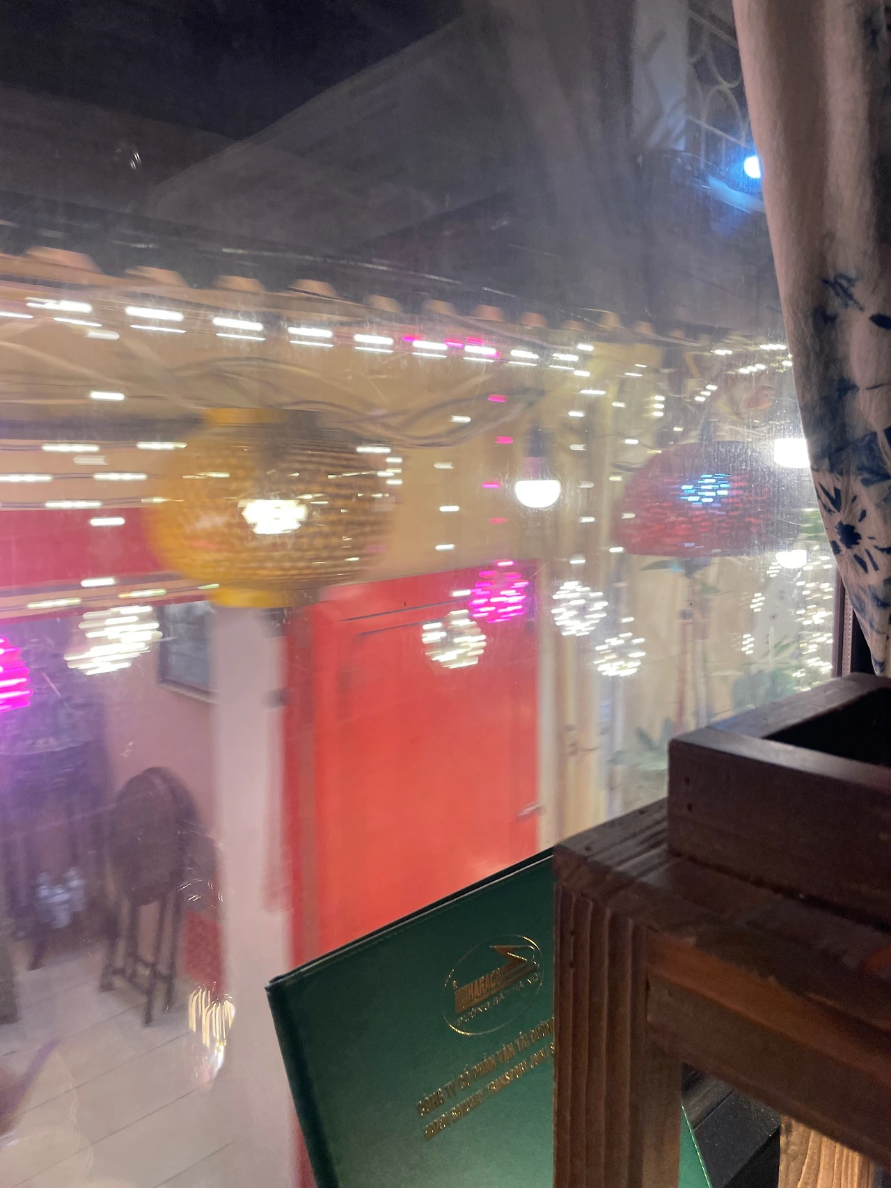하노이 기차역에서 출발하고 얼마 지나지 않아 하노이 시내의 그 유명한 관광코스인 기찻길을 지나가게 된다. 늘 아래서 기차가 지나가는 걸 보다가 기차 위에서 내려다보는 기찻길 풍경은 또 새롭다. 밖에서 볼 때와 안에서 내려다볼 때가 또 완전 다른 느낌인 줄 몰랐다. 창문의 프레임 안에서 늘어선 카페들의 각양각색 네온 장식들이 빠른 속도로 행진한다. 마치 유성만화의 필름이 넘어가듯.