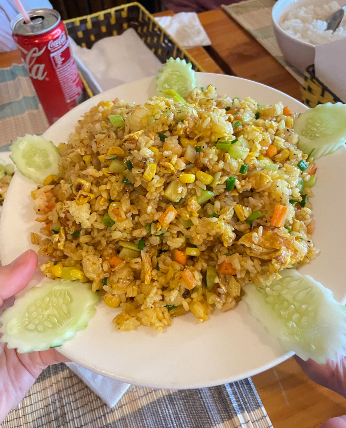코코넛 커리를 추천해서 왔건만 해산물 볶음밥 맛집일 줄이야. 한식러버 남편을 위해 튜브 고추장을 가방에 챙겨 왔더니 한국서 온 식구들도 나도 나도 하기 바쁘다. 고추장 한 방울에 만원씩은 챙길 수 있는 절호의 기회다. 자자 줄을 서시오~! 내일은 김도 한 팩 꺼낼 예정이니 장당 푸르른 거 한 장씩 준비해 오면 되고! 투어 시작도 안 했는데 지갑 두둑해지기 아주 쉽드아~ 이 싸람들 쇼핑 옵션까지 시켜버릴까~