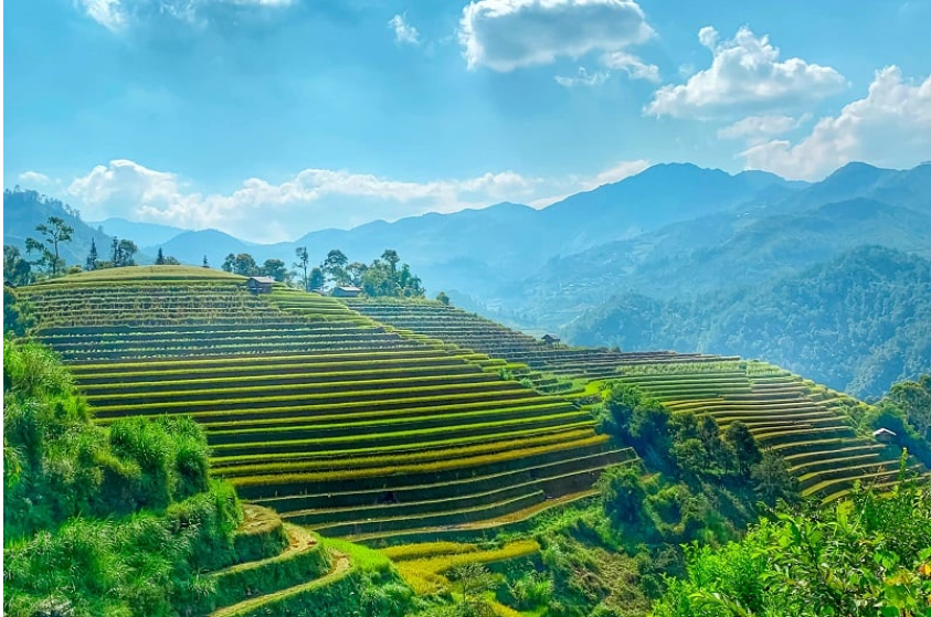 옛 조상 때로부터 얼마나 열심히 산을 깎아왔으면 한 시간을 차로 올라가는 동안 만나는 모든 산마다 계단식 논이 정갈하게 각 잡혀있다. 논 위에 파란 벼들은 하늘을 향해 고개를 바짝 들고 있다. 가을날의 황금빛 벼 계단도 장관이리라. 산을 타고 논을 타며 집이 뚝뚝 지어져 있는데 아무래도 사파의 민족들은 축지법을 써서 이웃집을 오가는 것만 같다.