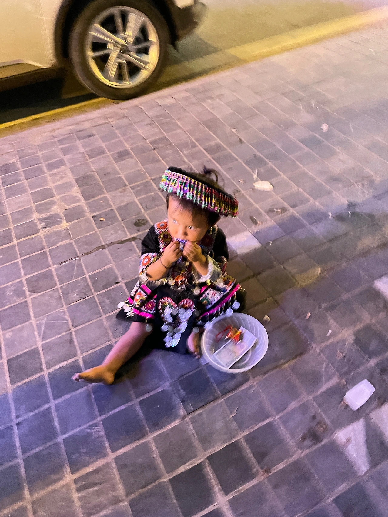 밤에 시내 거리에서 인파를 타고 걷다가 미처 아래를 못 보면 아기 다리를 밟고 지날지도 모르는 아찔한 상황이 생긴다. 이 어린 아기를 길바닥에... 이 사진 속 여자 아기보다 더 어린 돌이나 지났을까 싶은 아기도 있었다. 주위를 둘러보면 근처에 엄마가 지키고 앉아서 이제 겨우 앉기 시작했을까 싶은 아기를 바라보고는 있다. 하지만 이 어린 소중한 아기를 구걸의 목적에 내 던져 놓는 그들에게 화가 머리끝까지 치민다. 잠시 서서 엄마를 째려보았다. 관광객은 미처 못 알아볼 엄마였지만 난 알아볼 수 있었으니까. 눈을 슬며시 피하는 양심은 있어 다행이라 여기며 탐탁잖게 어쩔 수 없는 발길을 돌린다.