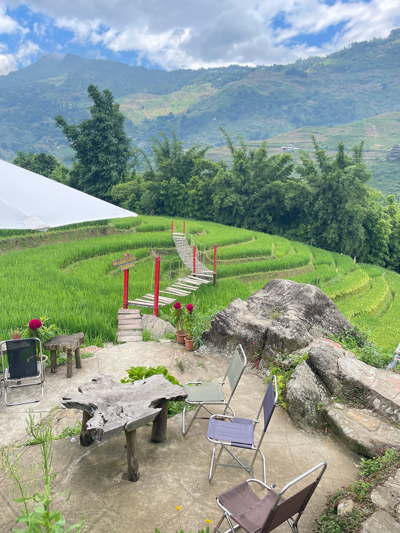 지난번 친구와 만난 사파는 이틀 내내 자욱한 구름에 휩싸여 있었다. 차의 헤드 라이터가 들어와도 불과 1-2m 전방 밖에 시야가 허락되지 않는다. 차량의 라이트가 도와주지 않는 순간엔 핸드폰 라이트에 의지해 보아도 1m 앞도 보이질 않아 도보 5분 거리의 마켓에 도착하는데 30분이 걸렸고 뷰가 끝내준다는 호텔의 테라스에서 이 아래 어떤 뷰가 있긴 있는 거겠지 하며 이틀을 지냈다. 지난 이야길 해주니 "이모 요즘 sns에선 그걸 곰탕뷰라 불러요. 사파 왔다가 곰탕뷰 속에서만 있다 왔다고들 해요"라고 알려준 조카덕에 배꼽을 잡고 웃고, 신조어노트에 '곰탕뷰'도 플러스 원 되었다. 그땐 사파의 테라스 논을 즐감하지 못한 호텔 테라스가 그리도 야속하더니 오히려 결코 잊을 수 없는 추억이 되었다.