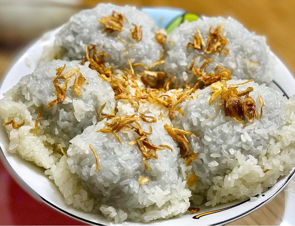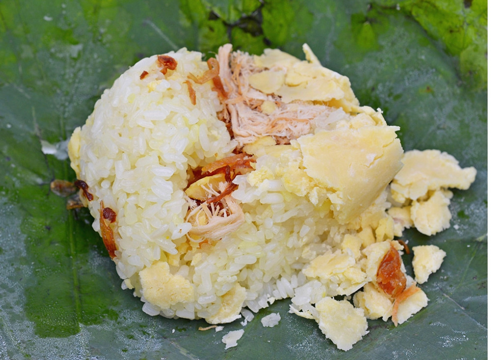 쏘이만(Xoi man)은 수도 하노이의 별미인 캐러멜라이징 돼지고기를 얹은 찹쌀밥이다