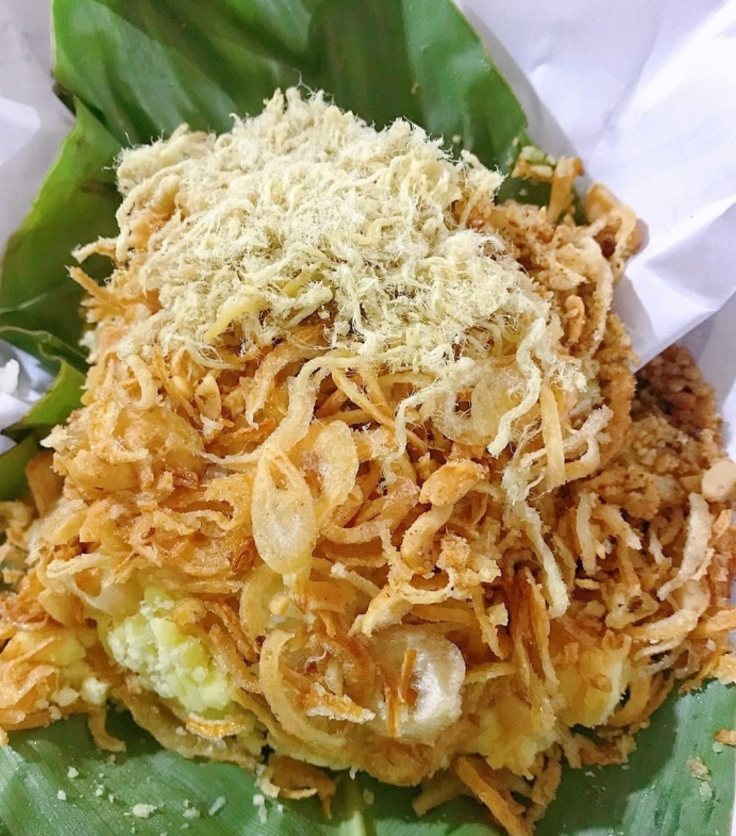 바삭하게 튀긴 샬롯을 토핑하고 바나나 잎으로 곱게 싸주면 완성이다
