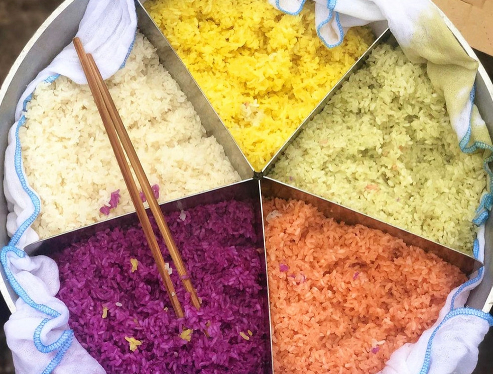 불 요소를 담은 적색 쏘이는 우리나라에서 눈에 좋은 열매로 열풍인 ‘슈퍼 걱’(Gac)이 주 재료이다. 이 과일의 즙이 바로 오렌지 빛을 내는 역할을 담당하는데 달달한 맛까지 담고 있어 식사대용보다는 간식과 디저트로 어울리는 찹쌀밥이다.