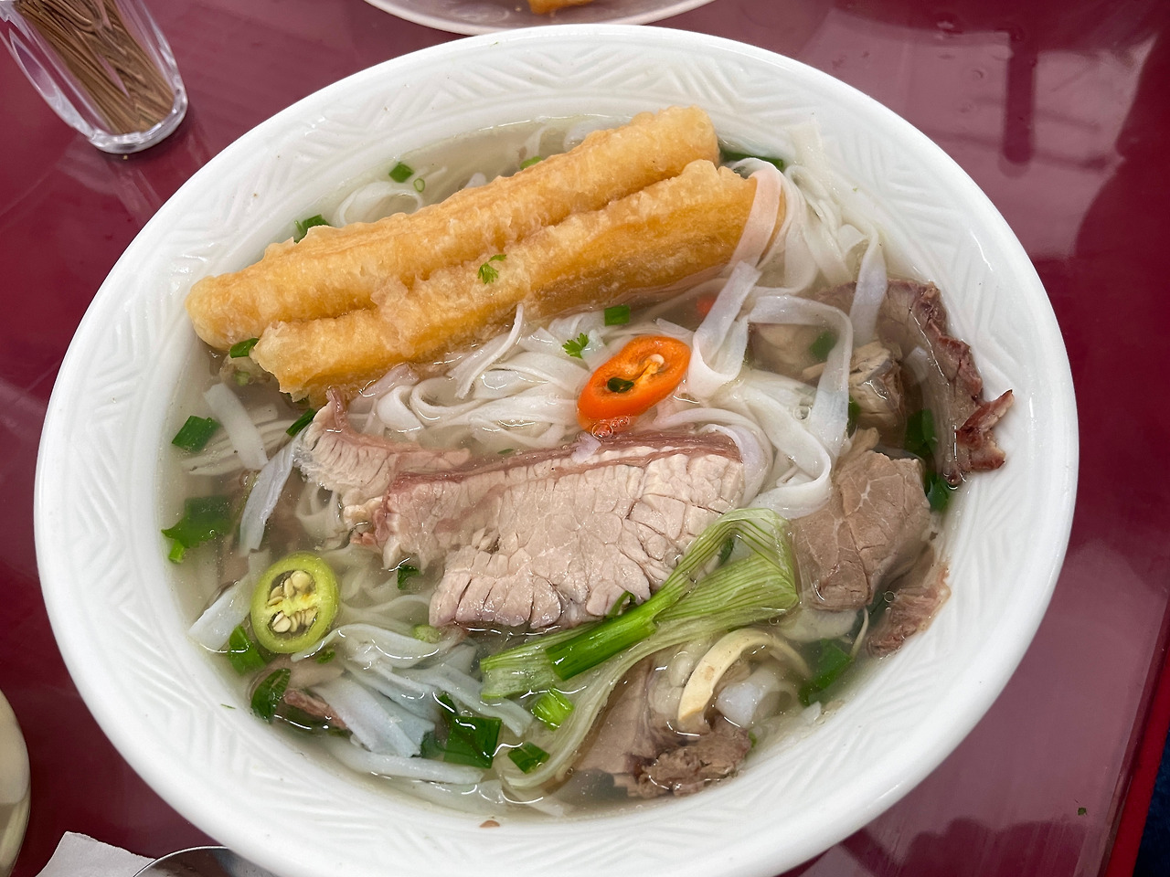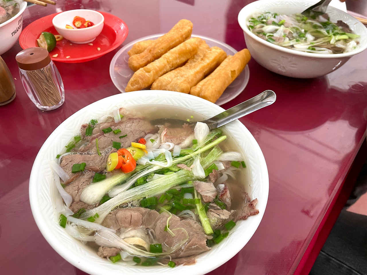 쌀면을 튀긴 딱딱한 꾸아이(Quẩy)를 추가로 주문해서 쌀국수를 먹는 동안 국물에 담가두면 흐물흐물 해진다. 국수를 다 건져 먹고도 쪼금 아쉬울 즈음 말랑해진 이 꾸아이를 건져 먹으면 이제 다 되었다는 맘이 든다.