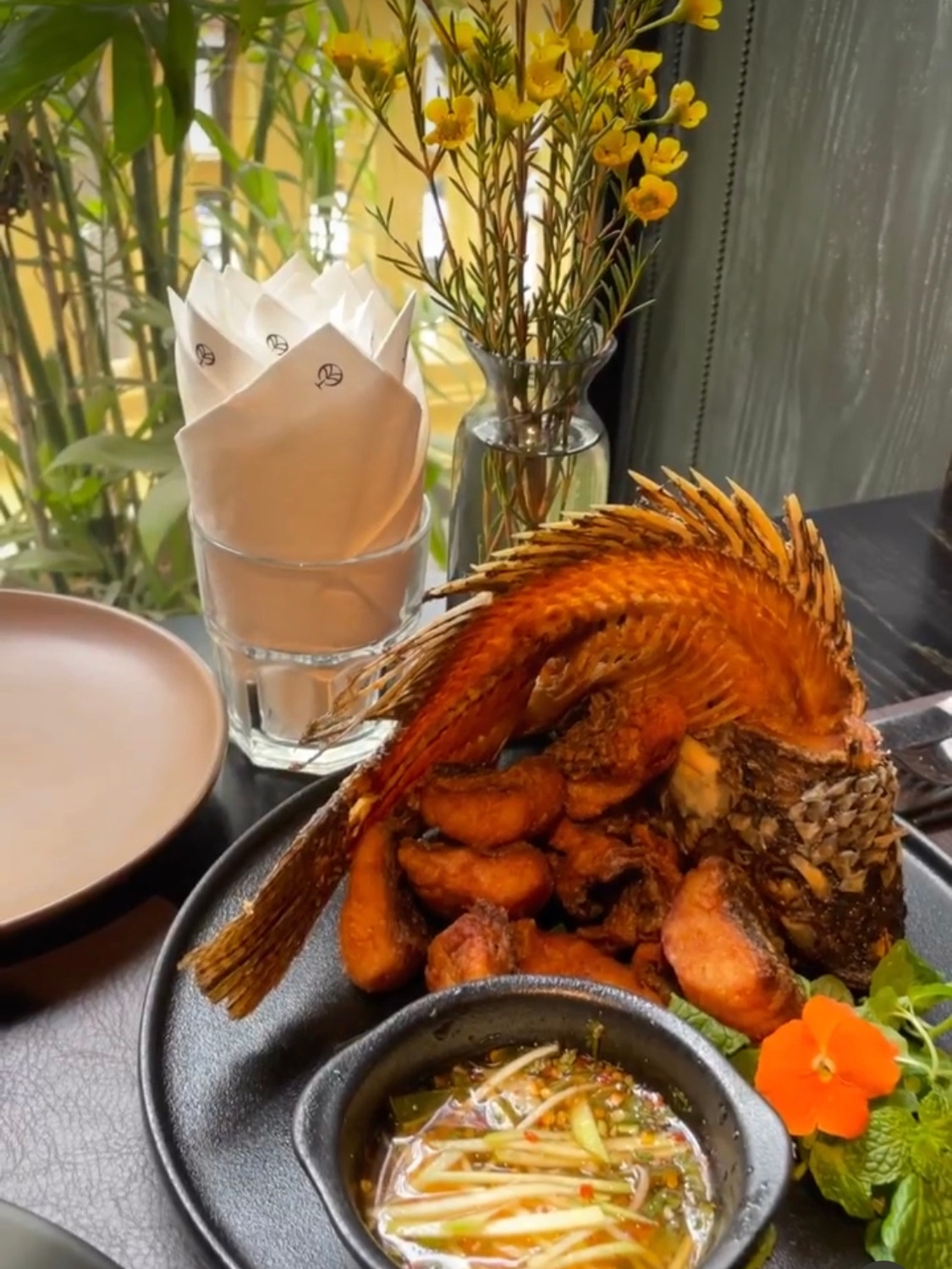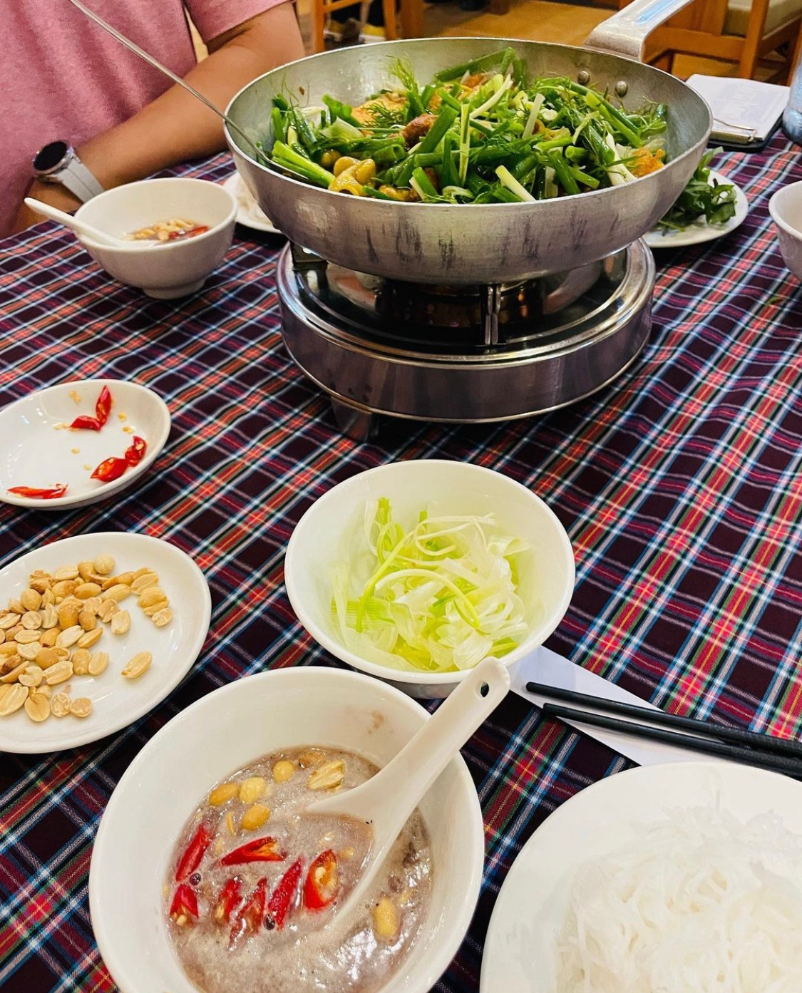 가물치 순살뿐만 아니라 생선 내장을 섞어야 더 맛있다며 정성스레 볶아 주셨다. 오독한 텍스쳐의 곱창 같은 내장도 꽤 고소하고 괜찮았다. 손님이 떠날 때마다 반듯하게 다림질한 체크무늬 식탁보를 매번 정성스레 갈아 주기까지 하는 베트남에서 보기 드문 정결한 식당이었다. 베트남에 손님이 방문하면 모시고 올 용기가 생겨난 꽤 인상적인 식당이었다.
