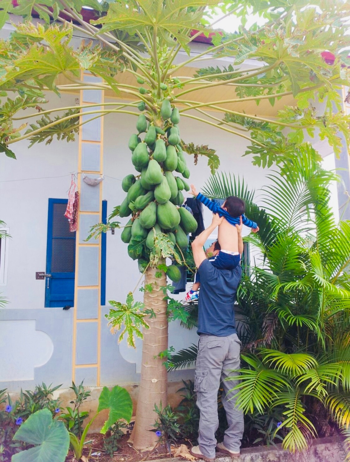 파파야 나무를 발견하곤 탐스러운 파파야를 획득하려 신이 난 아빠와 아들의 뒷모습이 사랑스럽다.