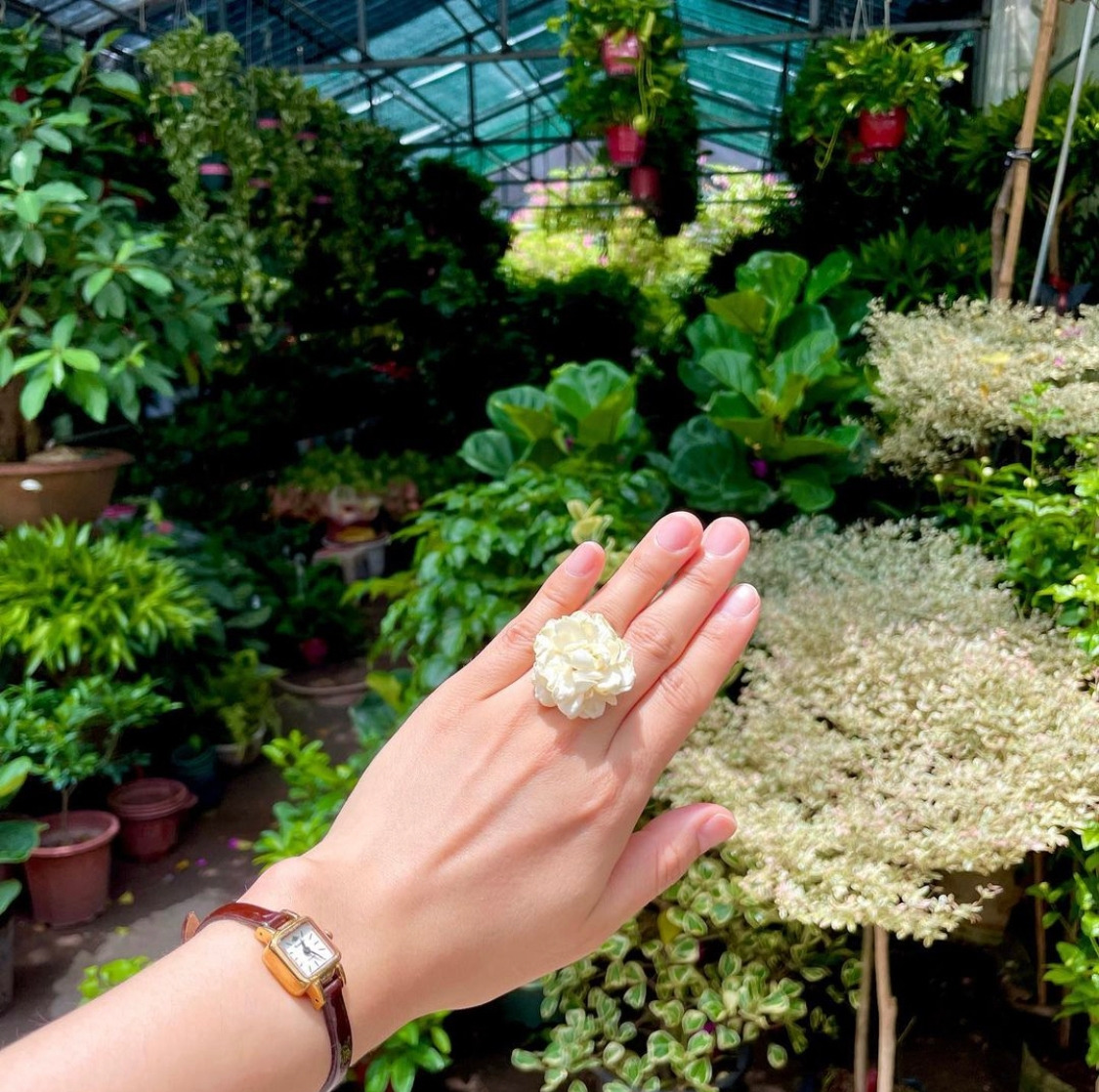 아쉬운 마음에 쟈스민 꽃반지를 끼어보며