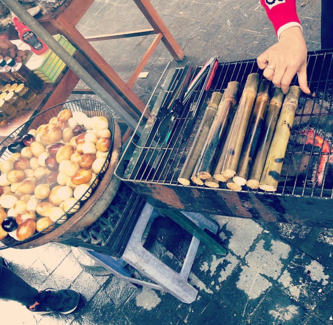 대나무 찹쌀밥에 구운 계란이 그리 꿀맛일 수 없다.
