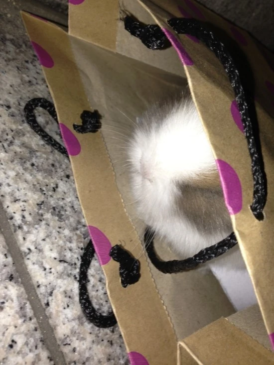 토끼에 대해 아무것도 모르던 나는 토끼 판매상 할머니가 주는 대로 쇼핑백 속에 피비를 받아 들고 왔다. 태어난 지 2주 갓 지나거나 2주 정도 된 아기 토끼는 그저 세상이 신기한 듯, 쇼핑백이 자기 몸보다 훨씬 길었을 텐데 쫄아서 웅크리고 있는 게 아니라 까치발을 하고 위를 둘러보기 바빴다. 내가 과외를 하러 간 동안 친구가 공원 같은 곳에서 잠시 내려주니 겁도 없이 뽈뽈 기어 나와 그 주변 여기저기를 탐색하던 아가 토끼.