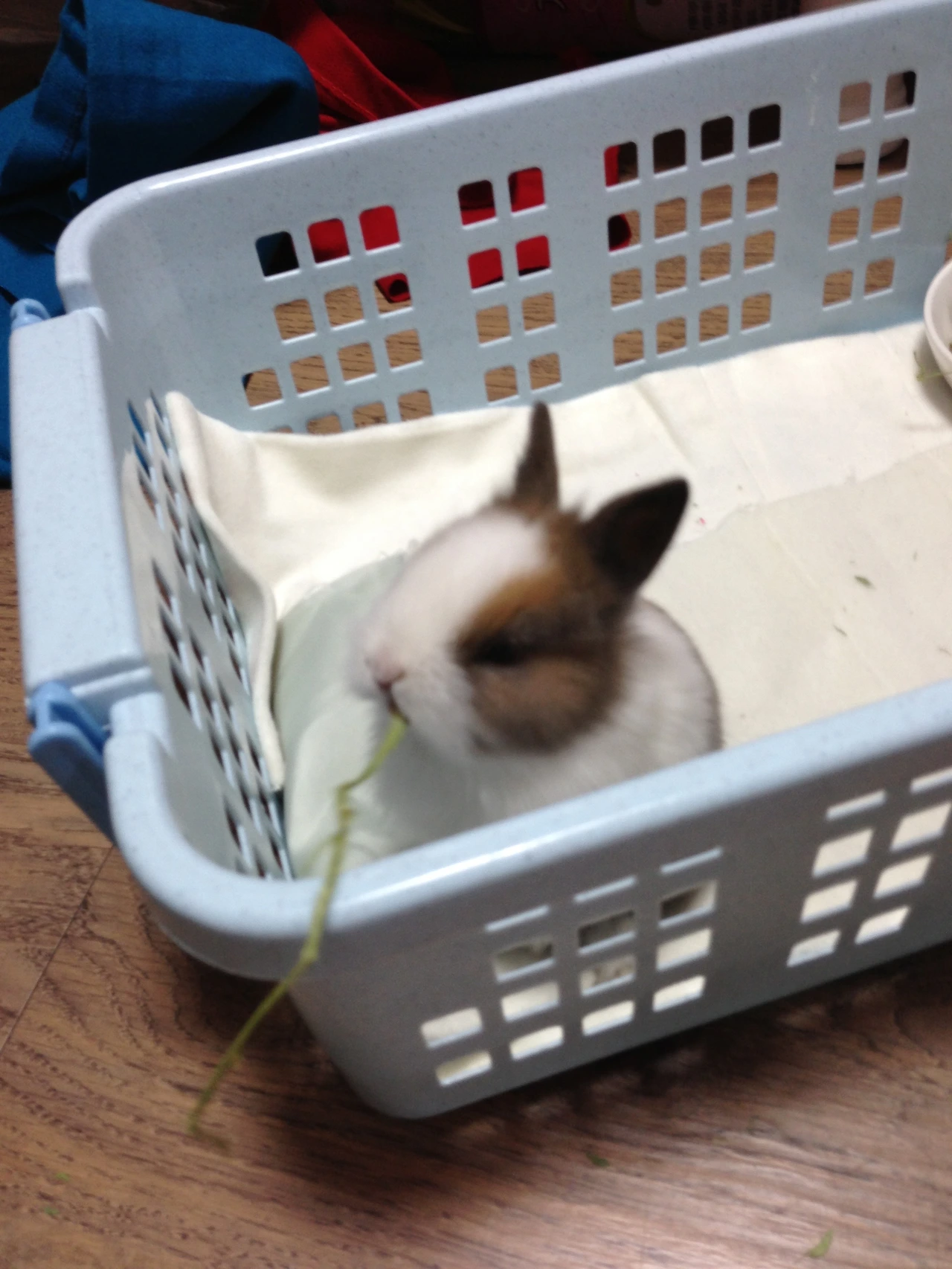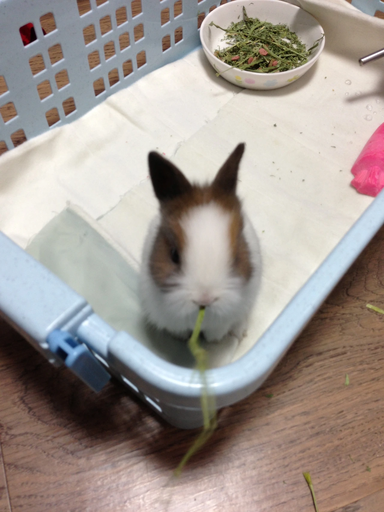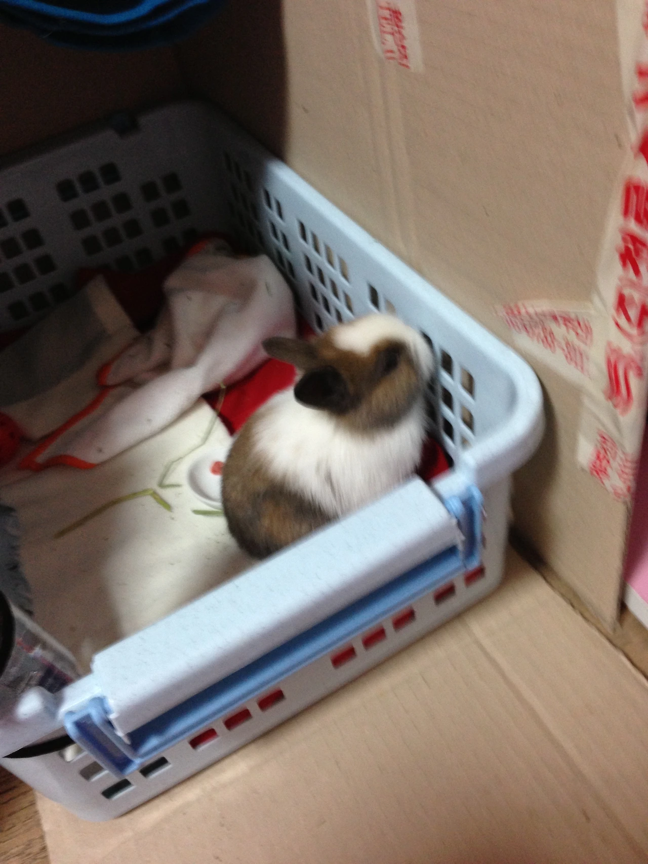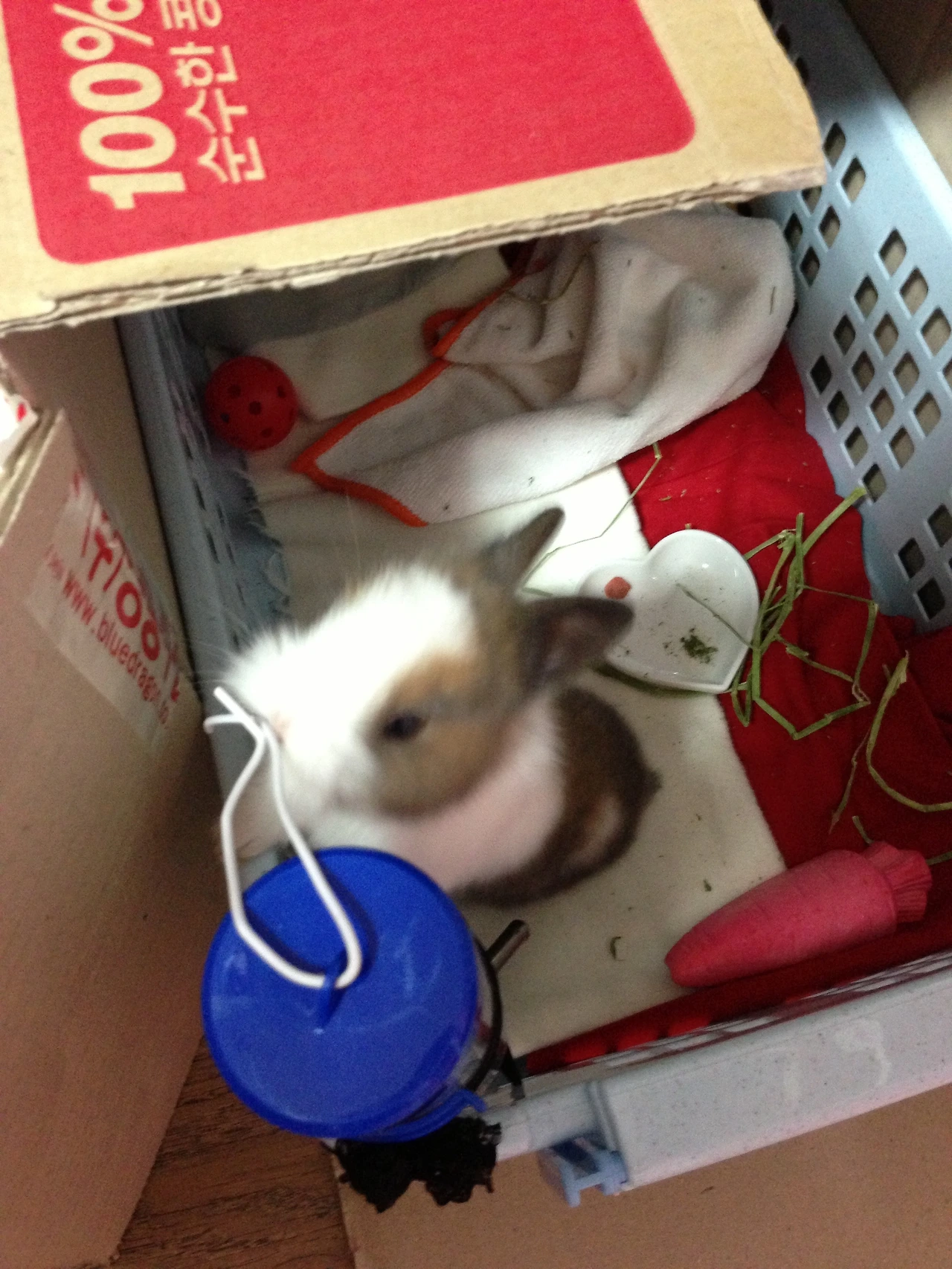 6평 남짓한 내 원룸 방에 호주머니에서 손바닥보다 작은 토끼를 꺼내 내려놓았다. 1주일 간은 어두운 곳에 두고 건드리지 말라던 할머니의 말이 뇌리에서 떠나지 않았기에 종이박스를 잘라서 급하게 바구니 위를 가려 동굴처럼 그늘을 만들어 주었다. 너무 작고 귀여워서 자꾸 만져보고 싶었지만 그러다 괜히 스트레스 받아 죽을지도 모른다는 두려움이 더 컸기 때문에 이 토끼를 내려 두고 친구와 함께 토끼 카페에서 부랴부랴 토끼에 대한 정보를 검색했다.