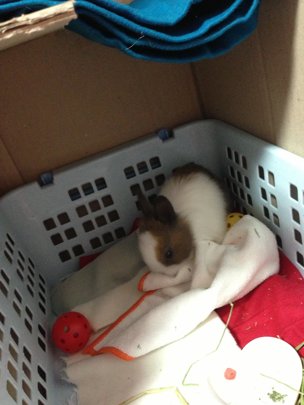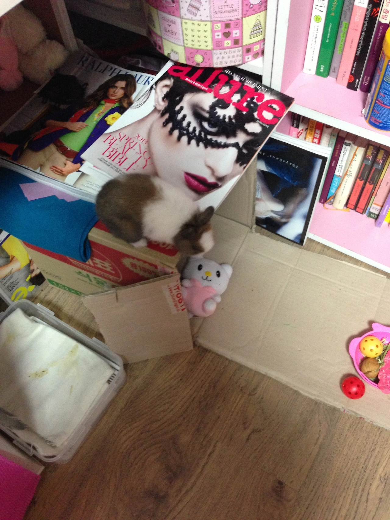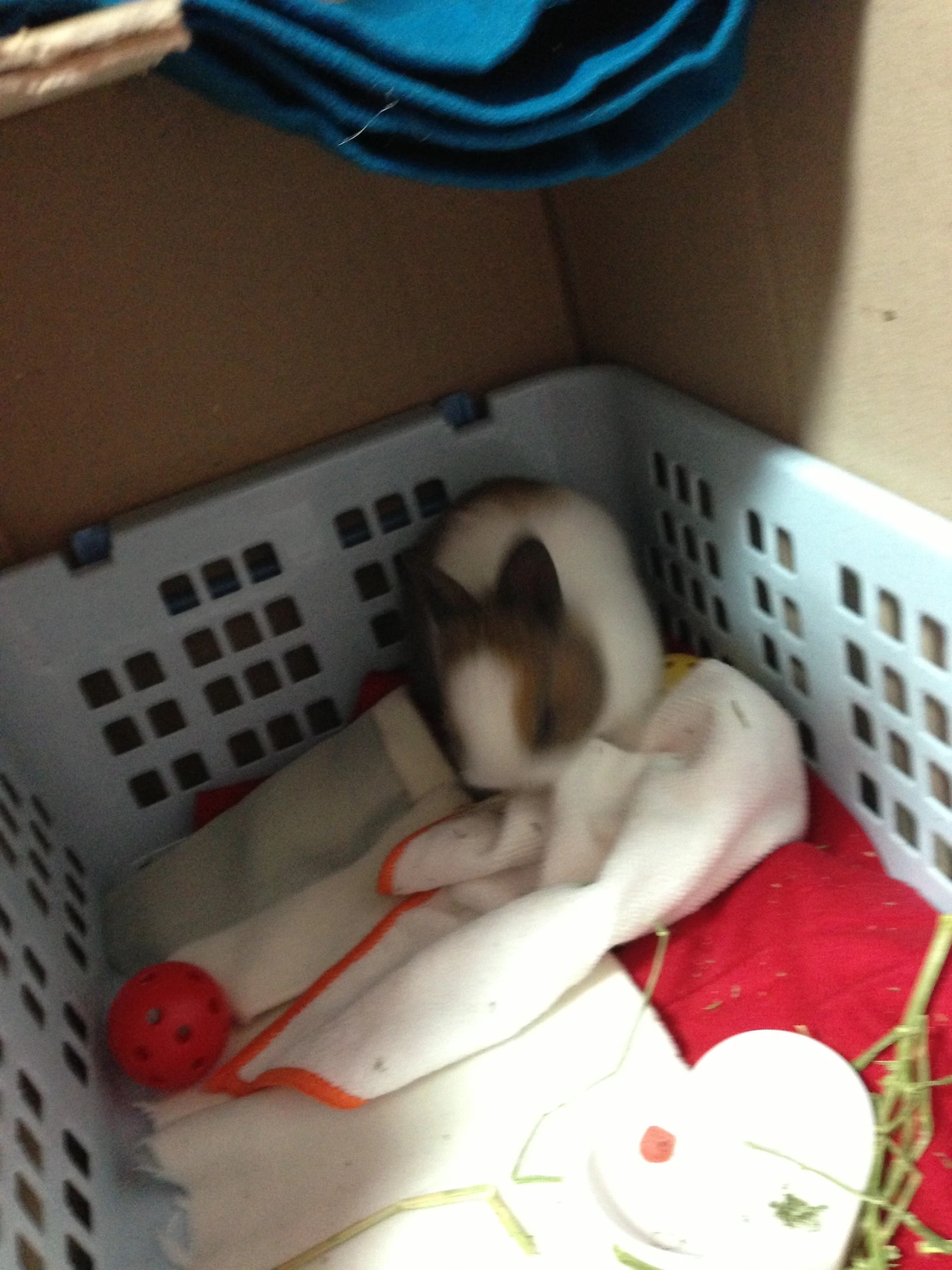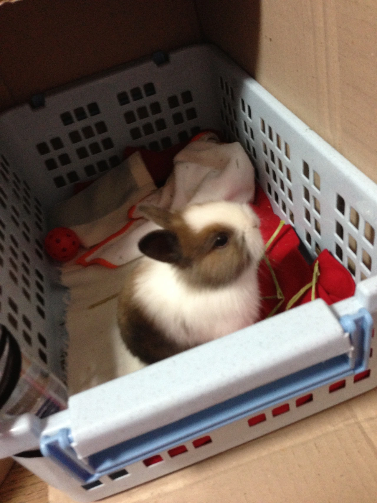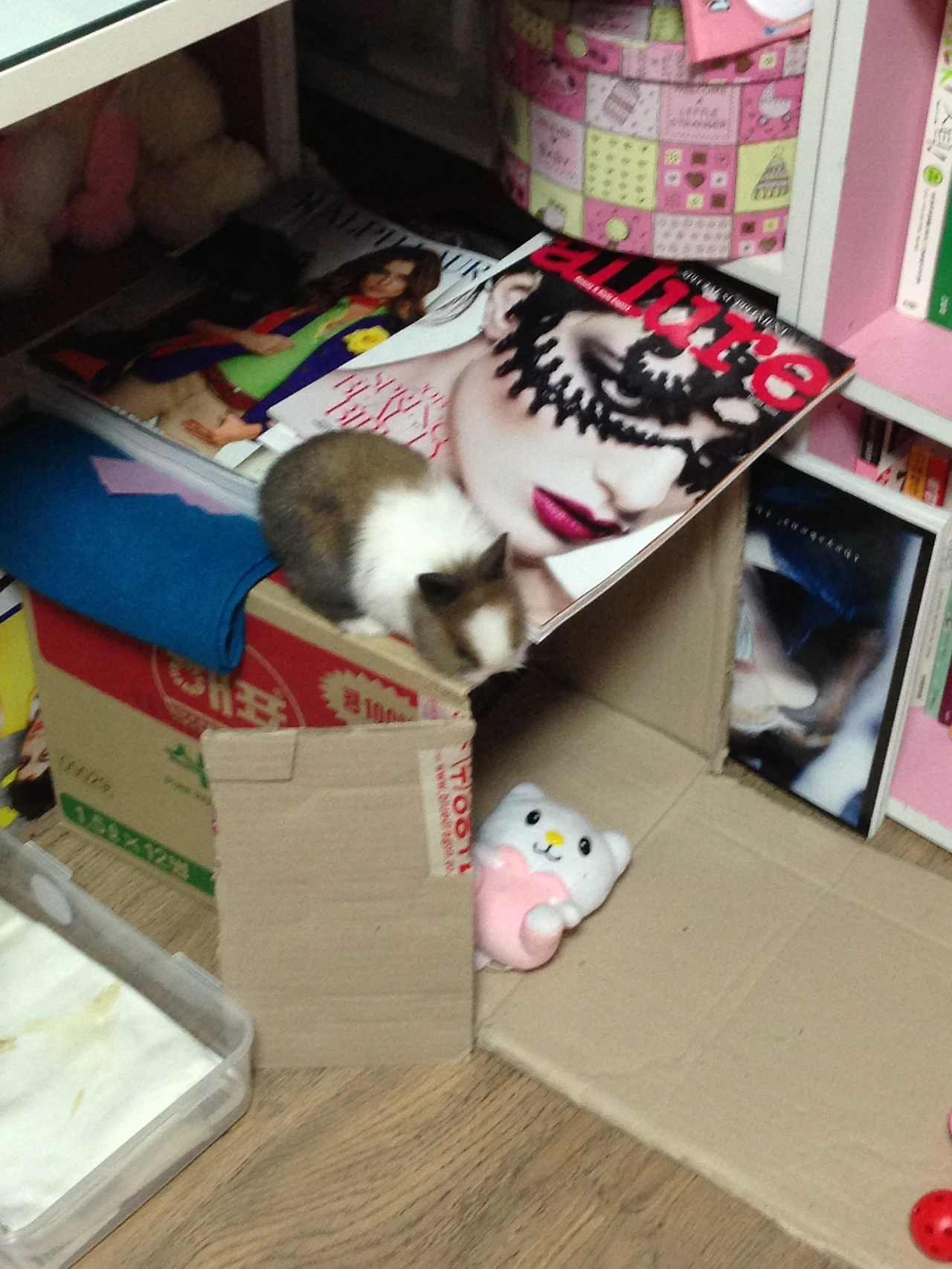 6평 남짓한 내 원룸 방에 호주머니에서 손바닥보다 작은 토끼를 꺼내 내려놓았다. 1주일 간은 어두운 곳에 두고 건드리지 말라던 할머니의 말이 뇌리에서 떠나지 않았기에 종이박스를 잘라서 급하게 바구니 위를 가려 동굴처럼 그늘을 만들어 주었다. 너무 작고 귀여워서 자꾸 만져보고 싶었지만 그러다 괜히 스트레스 받아 죽을지도 모른다는 두려움이 더 컸기 때문에 이 토끼를 내려 두고 친구와 함께 토끼 카페에서 부랴부랴 토끼에 대한 정보를 검색했다.
