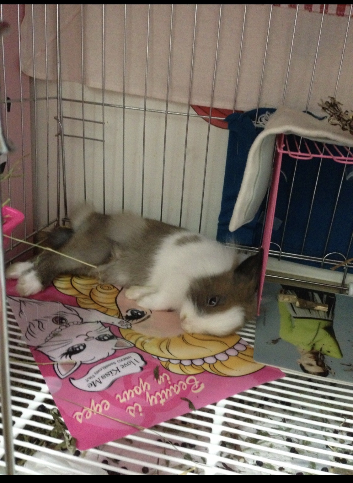 나는 제일 먼저 피비가 오줌 싼 바닥을 식초로 전부 닦았다. 그리고 오줌 묻은 휴지를 배변판에 넣고 피비 건초통 아래에 화장실을 넣어주었다. 이제 곧 저기 위에 올라가서 건초를 먹으면서 똥오줌을 바로 가릴 수 있을 것이라는 (헛된) 기대에 부풀었다.