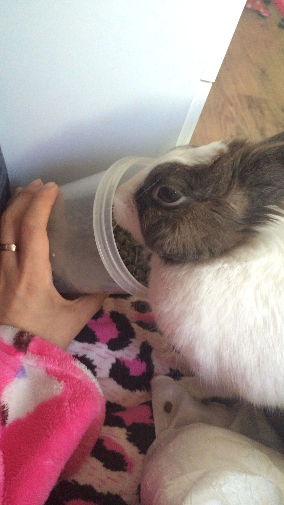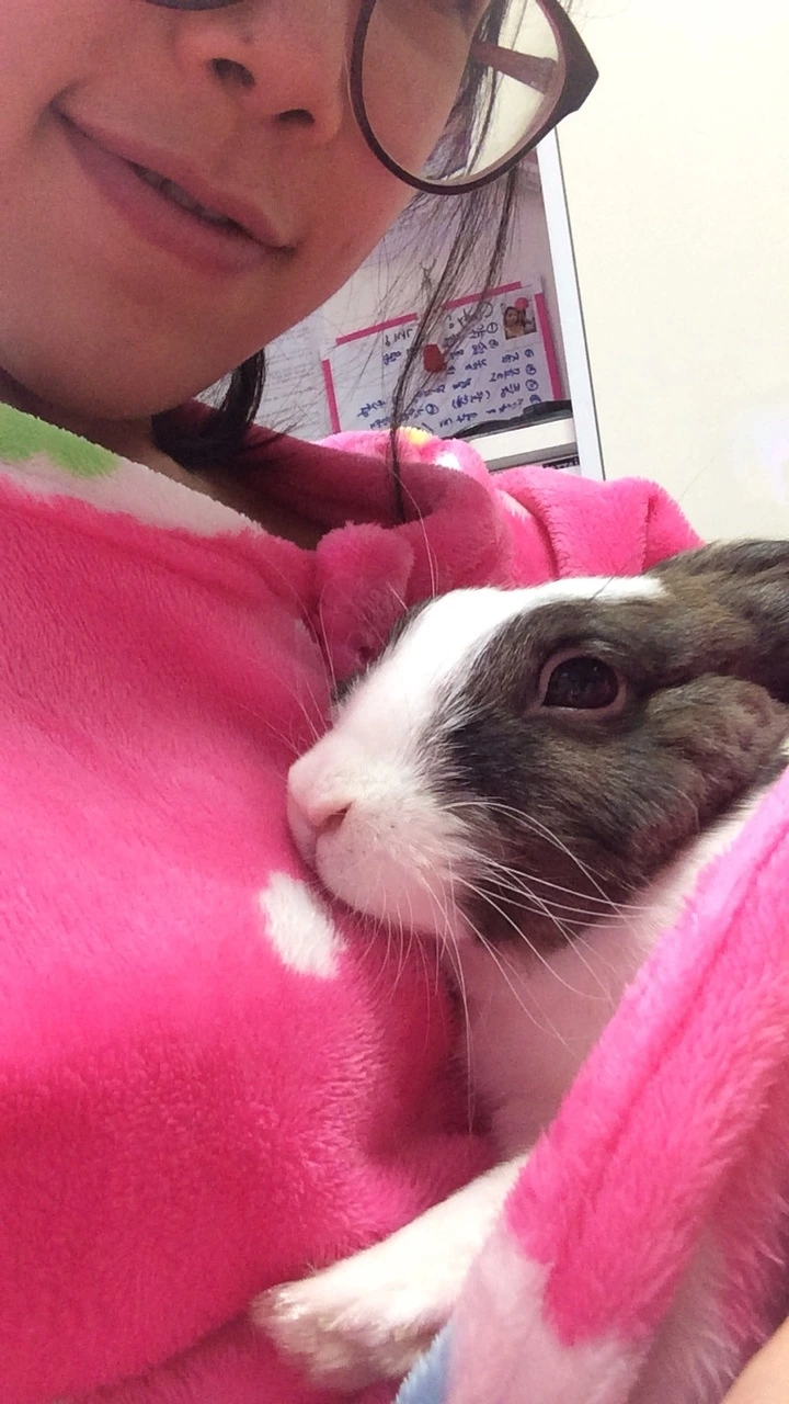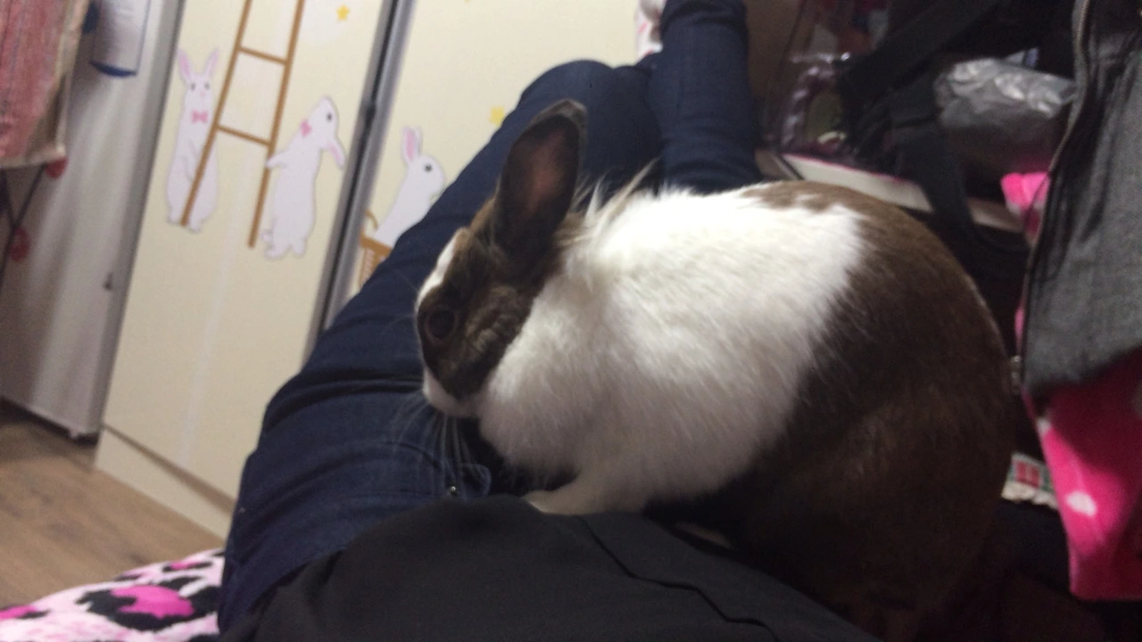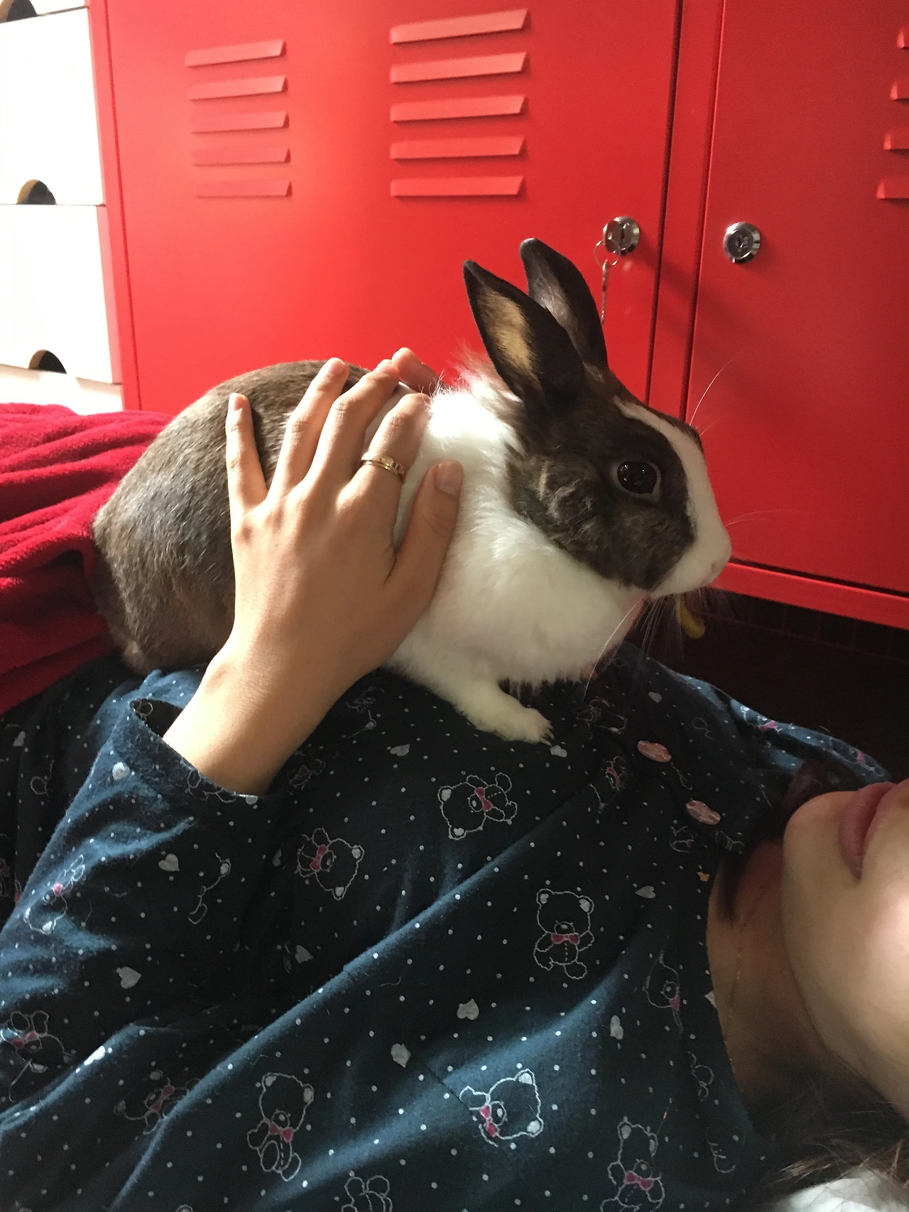 그래서 한 자리에서 움직이지도 않고 침대에 기대 하염없이 눈물을 뚝뚝 흘리던 내가 궁금했던지 손바닥만 한 솜사탕이 뽈뽈 다가왔다. 한참을 울다가 그 솜사탕을 들어 올려서 뒤집어 얼굴을 바라보았다. (추후에 알았지만 토끼는 이렇게 배를 까고 뒤집으면 안 된다.)