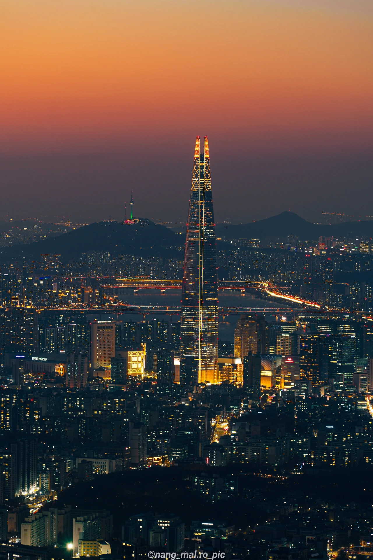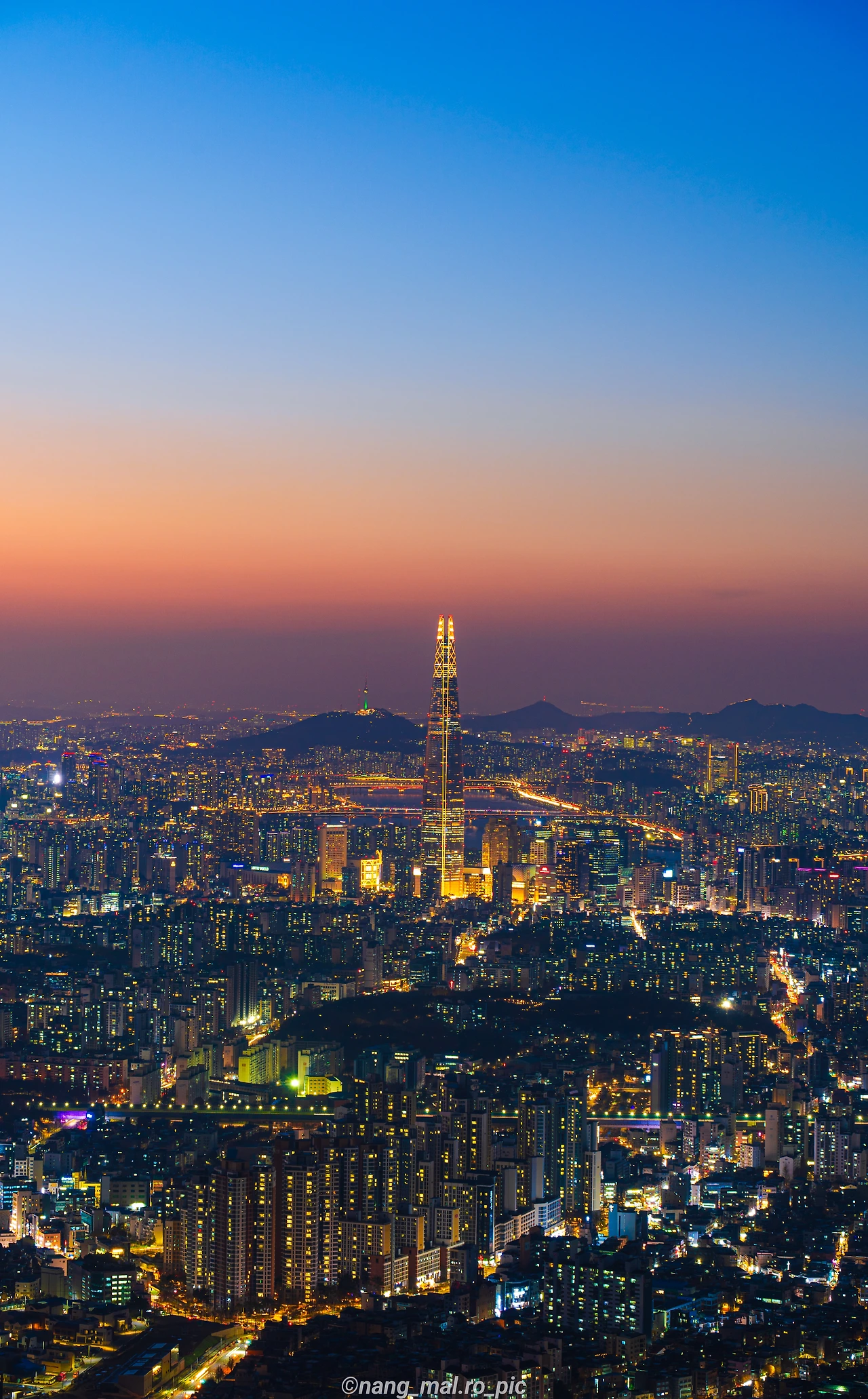 한참을 찍다가 오른쪽에 다른 한 분이 또 오셨다. 우리는 아무 말 없이 조용히 야경을 찍기 시작했다. 야경을 대강 찍고 서울로 돌아가기 위해 카메라를 챙기고 짐을 싸면서 선생님께 인사를 드리던 찰나, 오른쪽에 계신 분이랑 이야기를 하게 되었는데 알고 보니 중국 베이징에서 교환학생으로 잠깐 한국에 온 젊은 친구라는 걸 알게 됐다. 나는 바로 중국어로 인사를 했고, 우리는 몇 마디를 주고받다가 같이 하산하기 시작했다. 선생님은 야경을 더 찍고 가시겠다며 뒤에서 인사를 해주셨다.