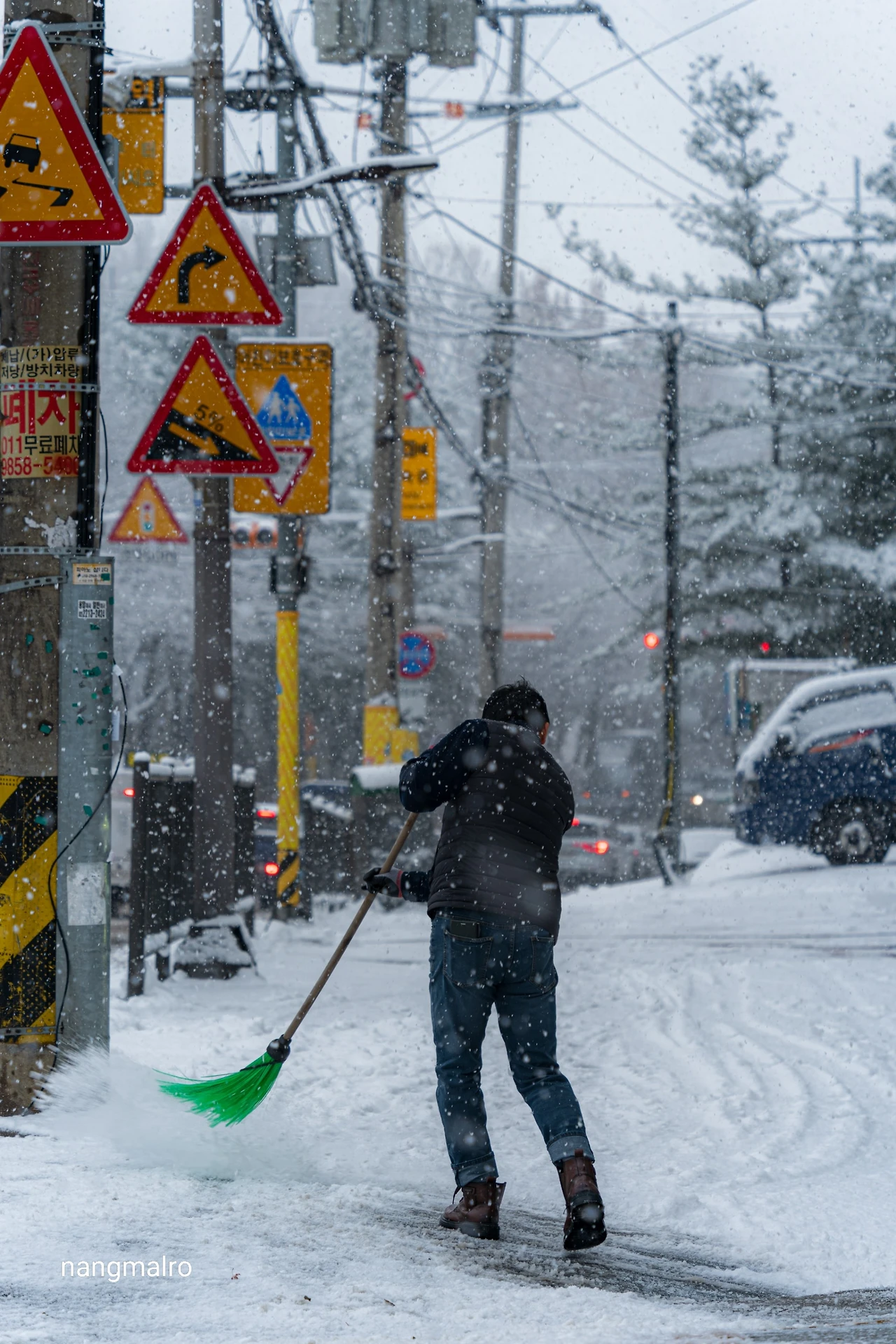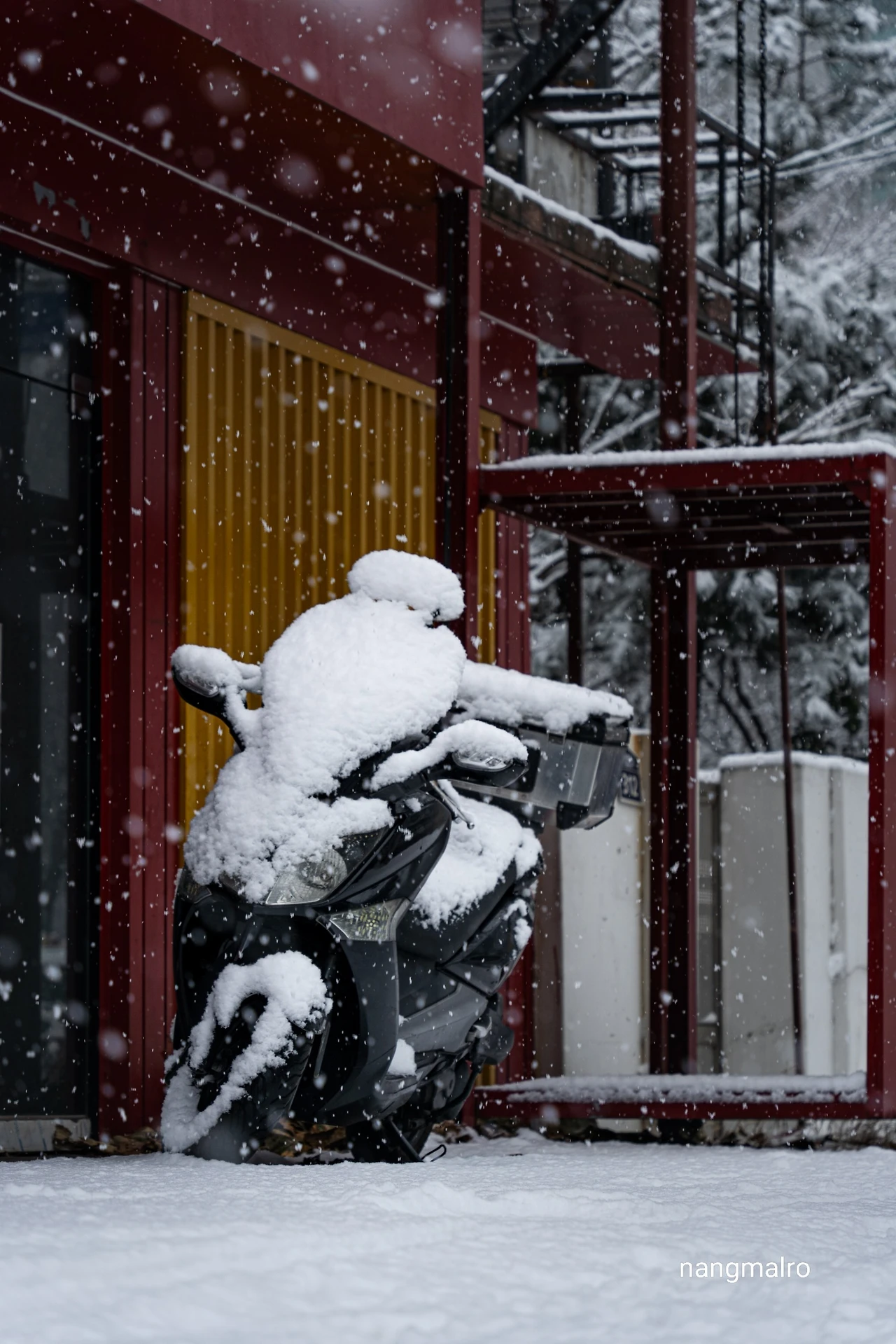 눈 내리는 동네 풍경을 찍는 것도 나름 의미가 있다. 어디 먼 곳을 가서 찍기보다는 일상을 찍는 느낌이주는 여운이 크기 때문이다. 요즘은 다양하게 시선을 돌리려 노력 중이다. 각 잡고 찍기보다는 자연스럽게 눈을 돌려가며 찍는 게 마음에 드는 결과물들을 얻기 수월한 거 같다. 그게 순간을 담는다는 뜻을 제대로 이해한 것일 수도 있다. 이번에는 눈이 얼마나 올려나.. 폭설보다는 소박하게나마 와주길 바라고 있다.